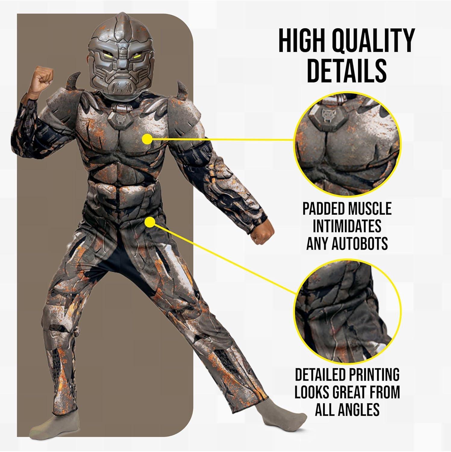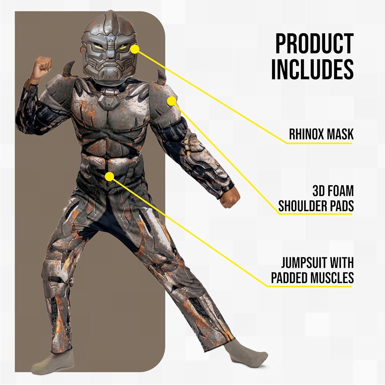 Become one of the strongest and most intelligent Maximals, in this Rhinox Classic Muscle Costume! The costume features a fully sublimated muscle jumpsuit with Rhinox's armor art and shoulder sleeve armor. An injection molded half-mask is also included to complete the look! Don't miss out on this cool costume this Halloween!