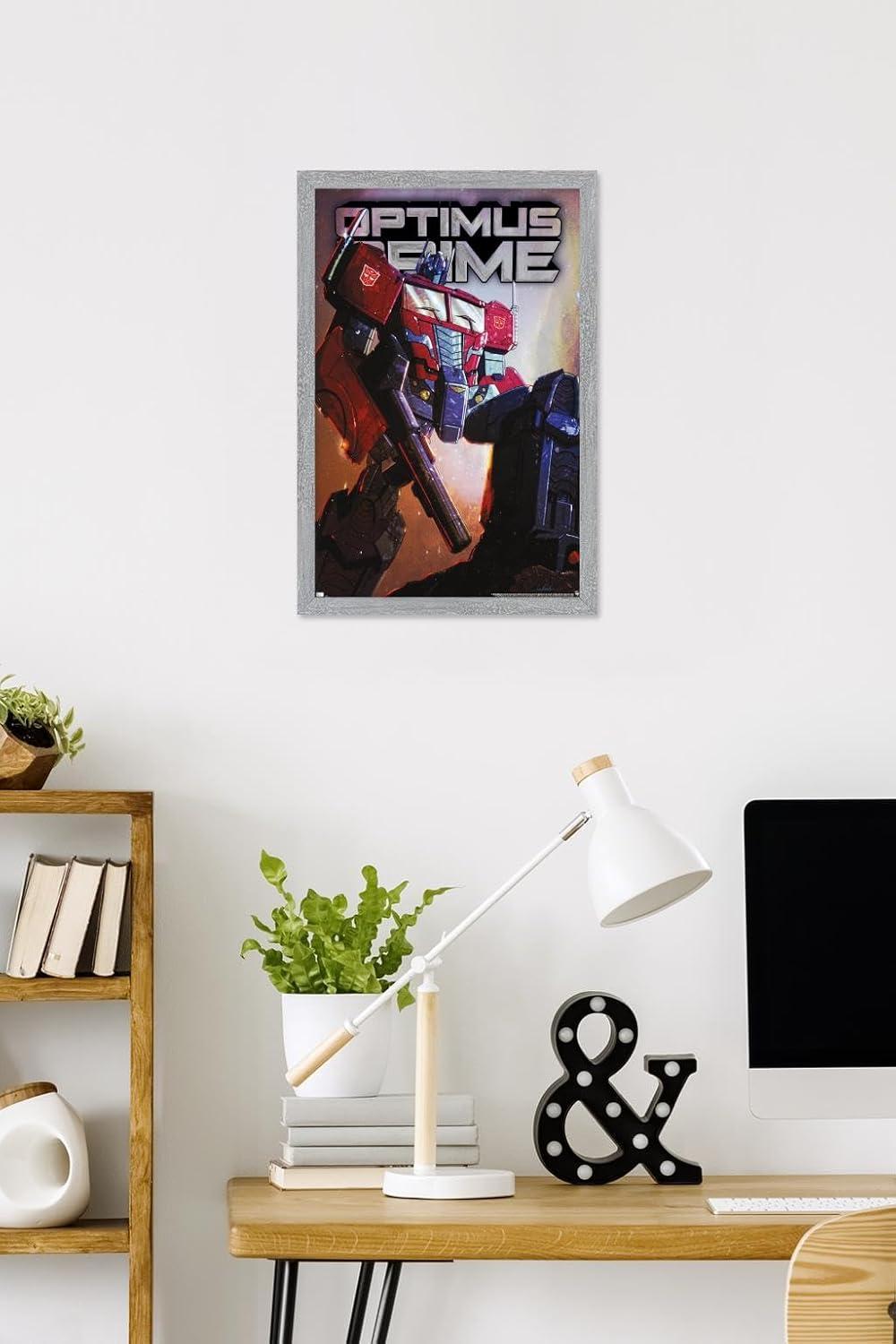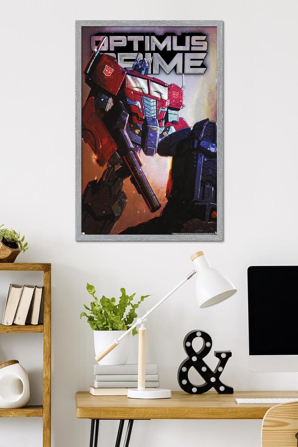 Hasbro Transformers – Optimus Prime Wall Poster, 34L” x 22.4W”, Poster & Clip Bundle(Gray Framed Version)
