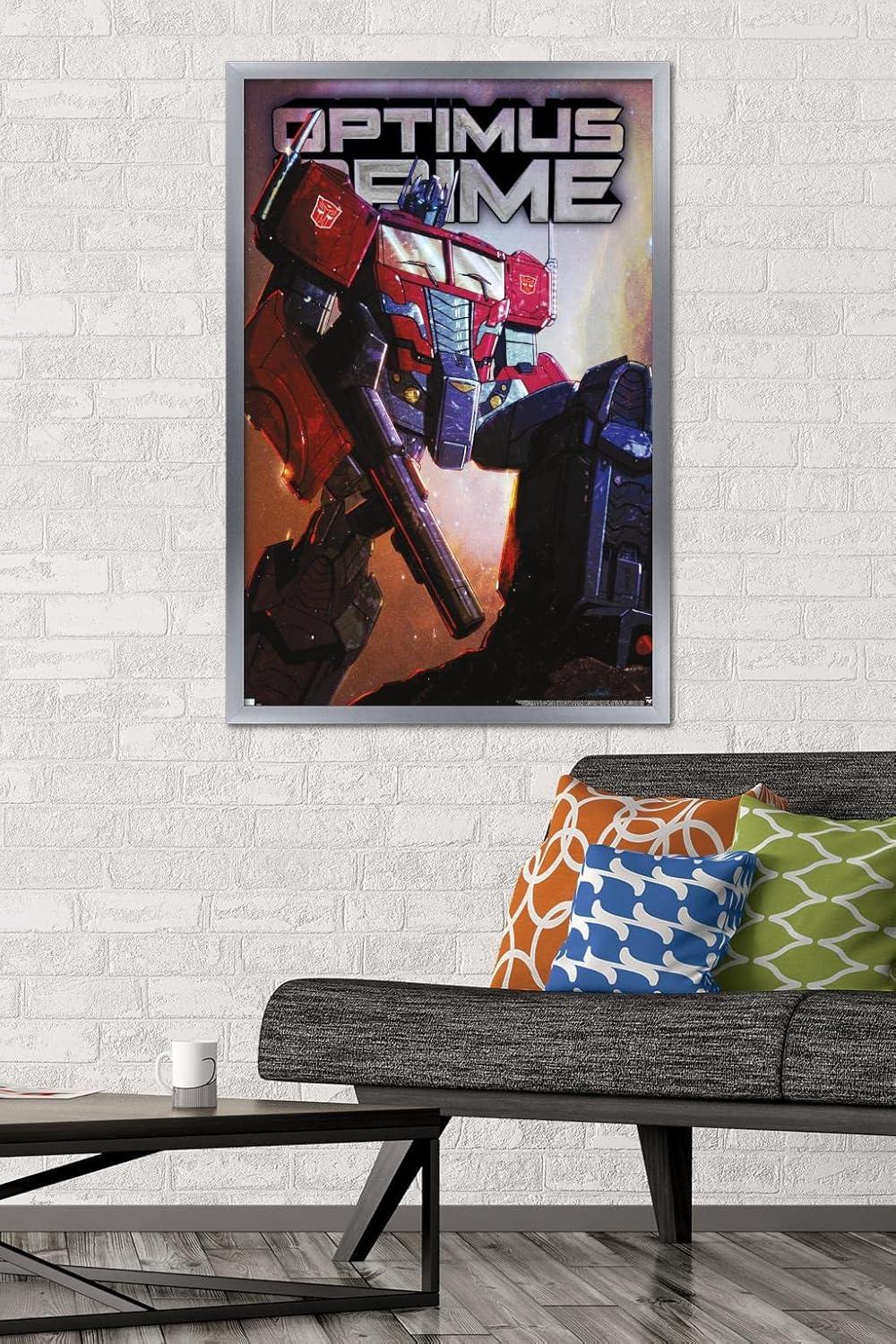 Hasbro Transformers - Optimus Prime Wall Poster, 34L" x 22.4W", Poster & Clip Bundle(Silver Framed Version)