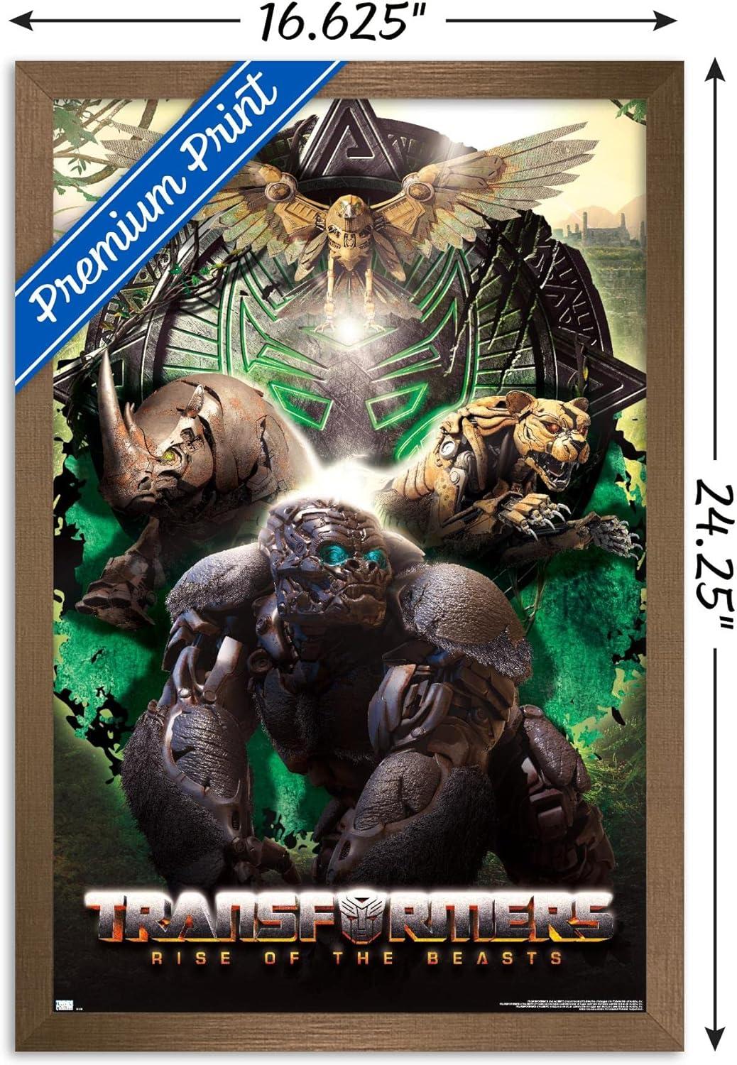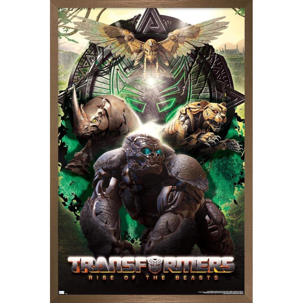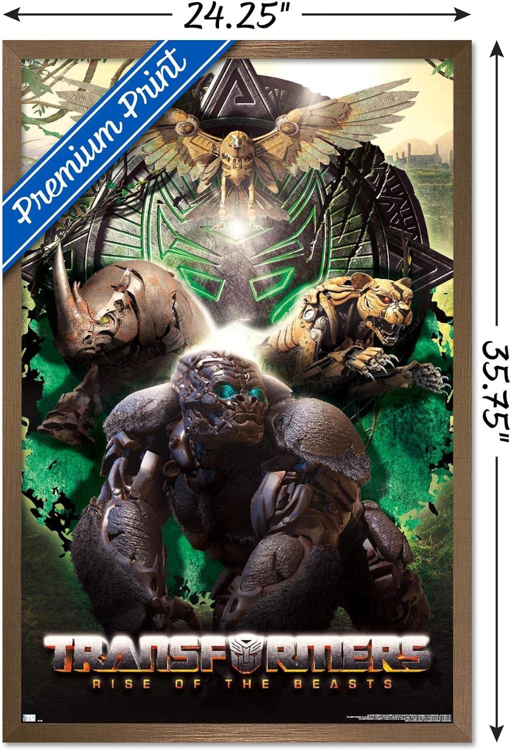 Hasbro Transformers: Rise of the Beasts – Maximals Wall Poster, 34L” x 22.4W”, Mahogany Framed Version(Blonde Framed Version)