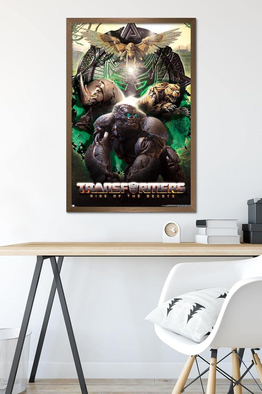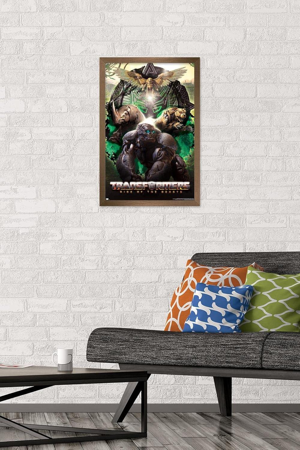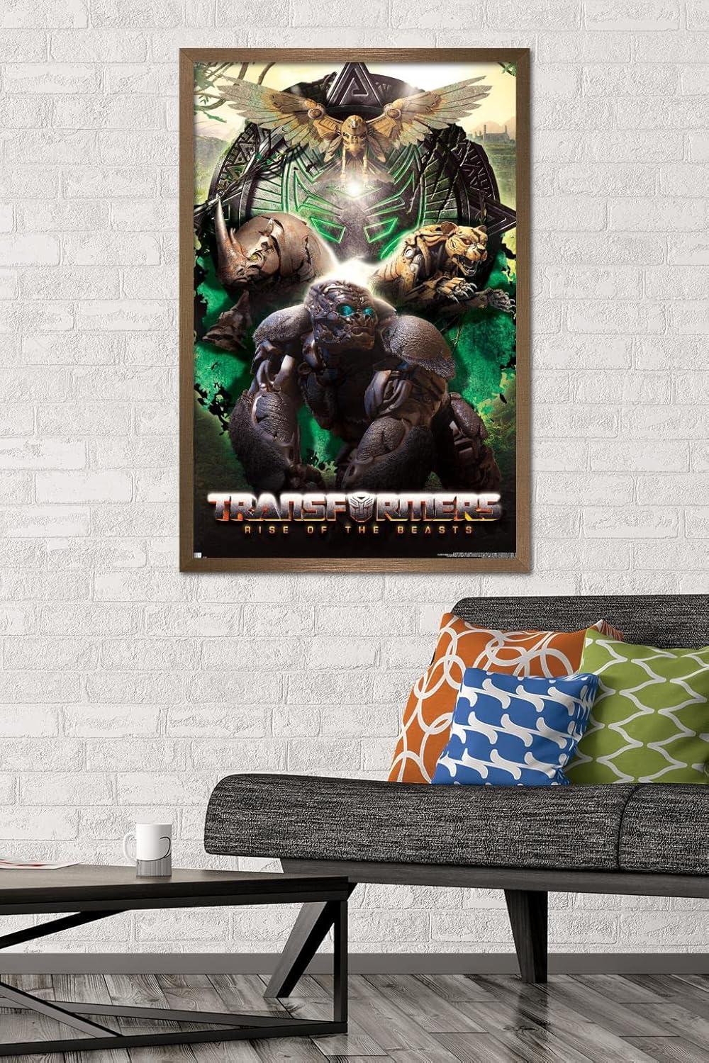 Hasbro Transformers: Rise of the Beasts – Maximals Wall Poster, 34L” x 22.4W”, Mahogany Framed Version(Blonde Framed Version)