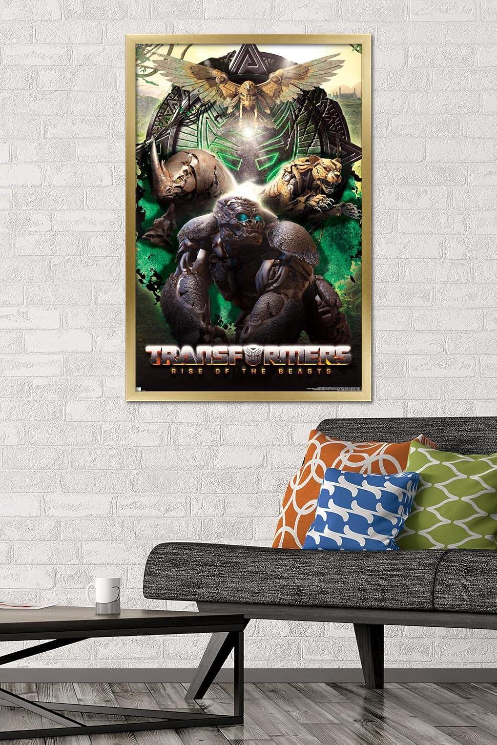 Hasbro Transformers: Rise of the Beasts - Maximals Wall Poster, 34L" x 22.4W", Mahogany Framed Version(Gold Framed Version)