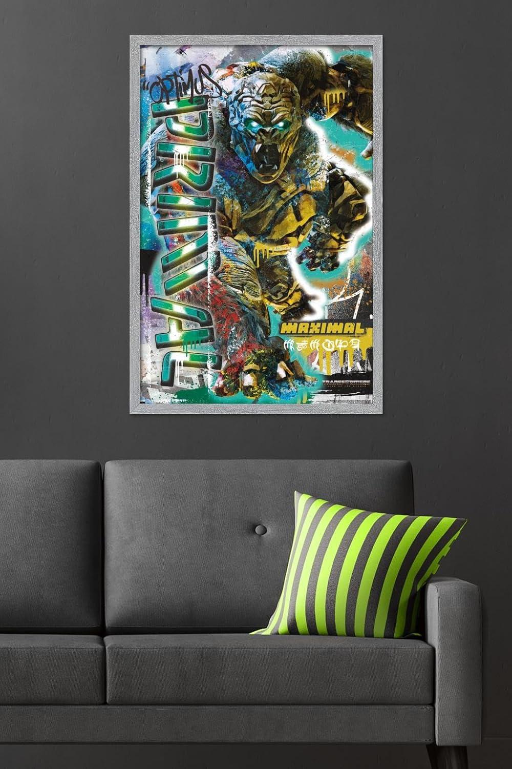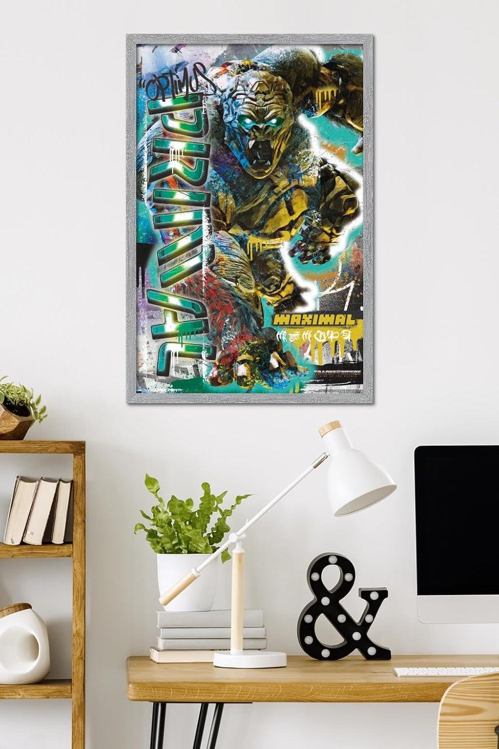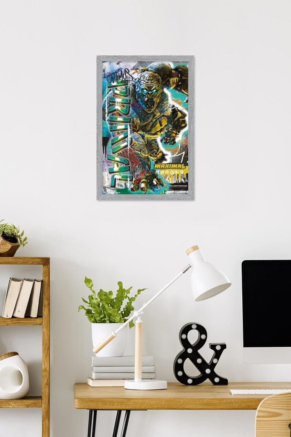 Hasbro Transformers: Rise of the Beasts - Optimus Primal Graffiti Wall Poster, 22.4L" x 14.7W", Silver Framed Version(Gray Framed Version)