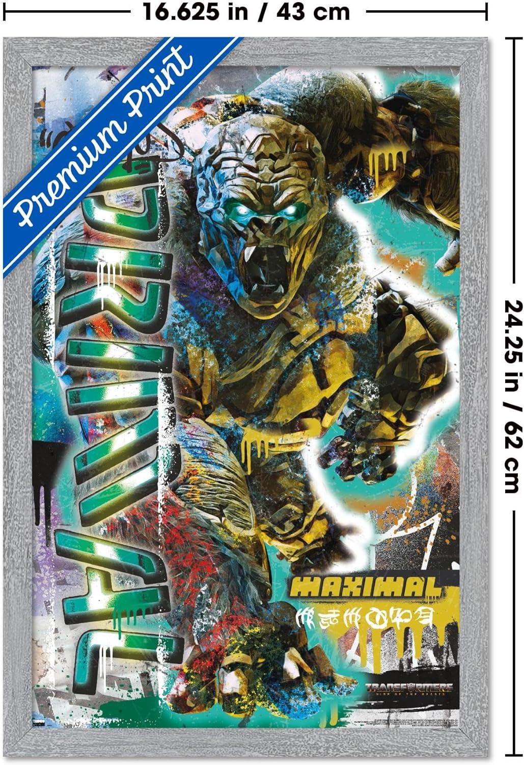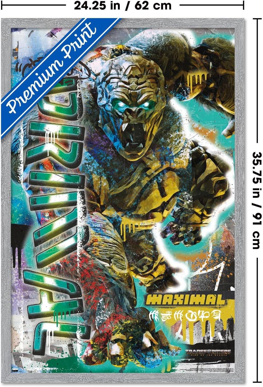 Hasbro Transformers: Rise of the Beasts – Optimus Primal Graffiti Wall Poster, 22.4L” x 14.7W”, Silver Framed Version(Gold Framed Version)