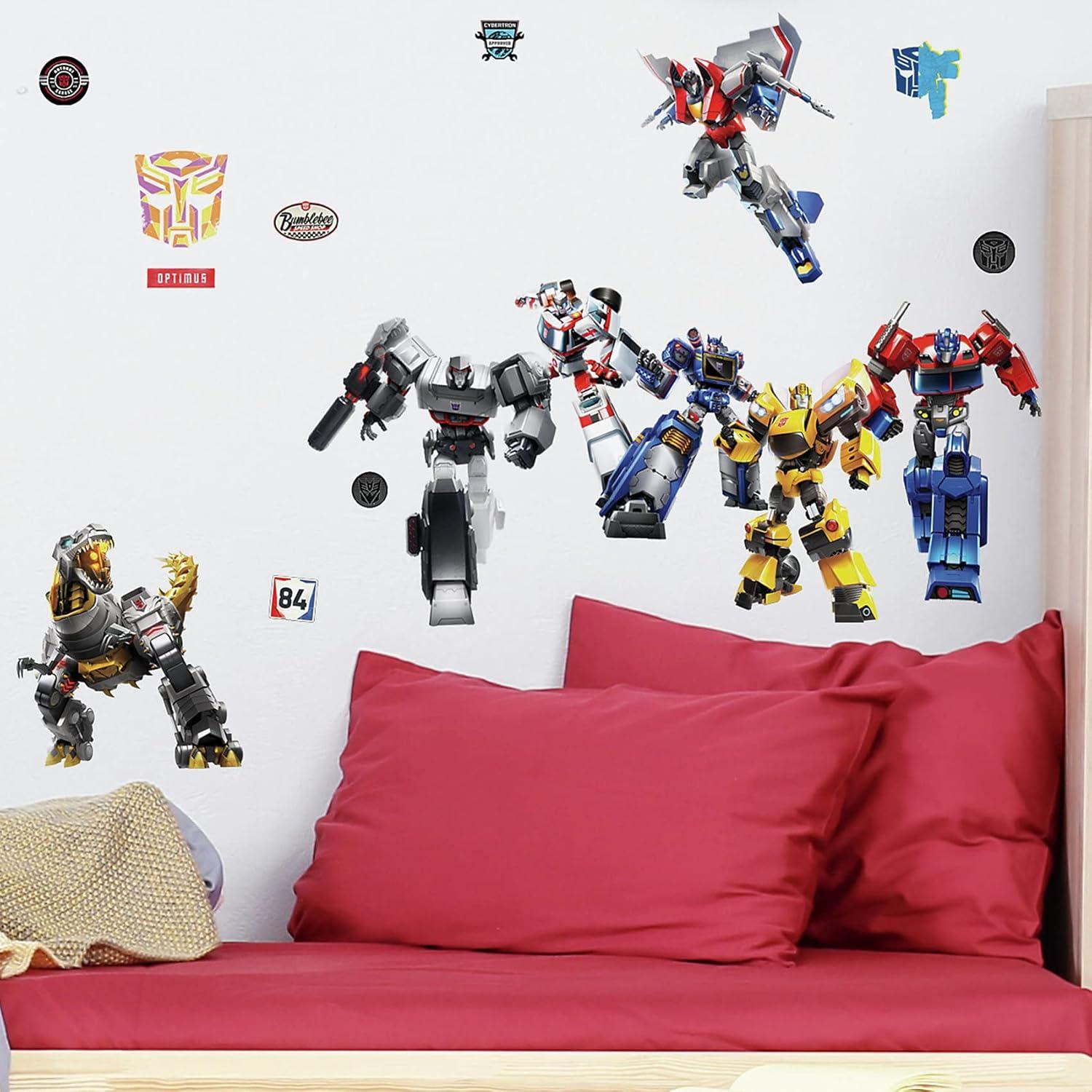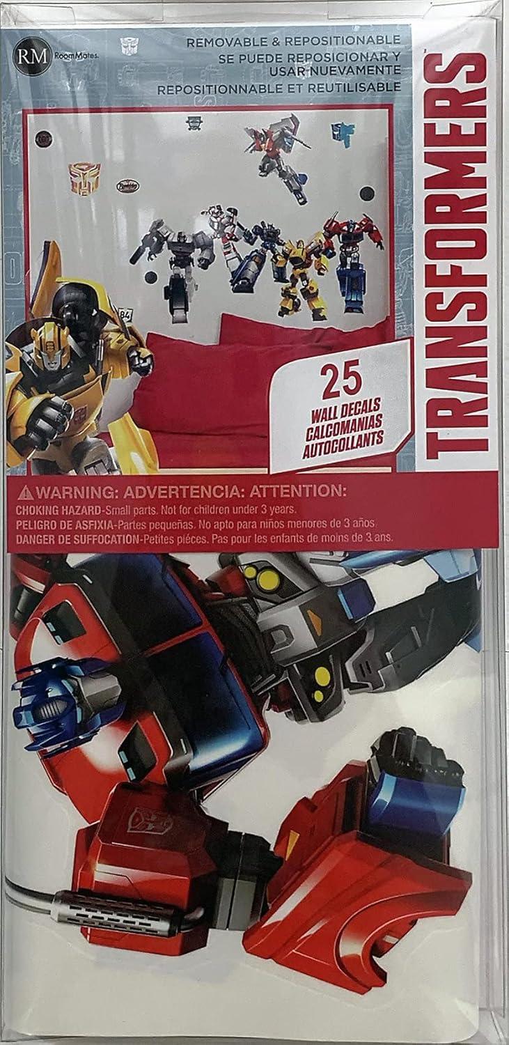 Decorate walls with Transformers All Time Favorites Peel and Stick Wall by RoomMates. Complete with 25 , this wall sticker set is a fun and creative way to transform any room in seconds. To apply, simply peel and stick to any smooth, flat surface. Remove, reposition and reuse as often as needed. Created with high quality vinyl that’s made to last, walls stay completely safe, and sticky residue is never left behind. It’s fast, fun and affordable wall decor at it’s best.