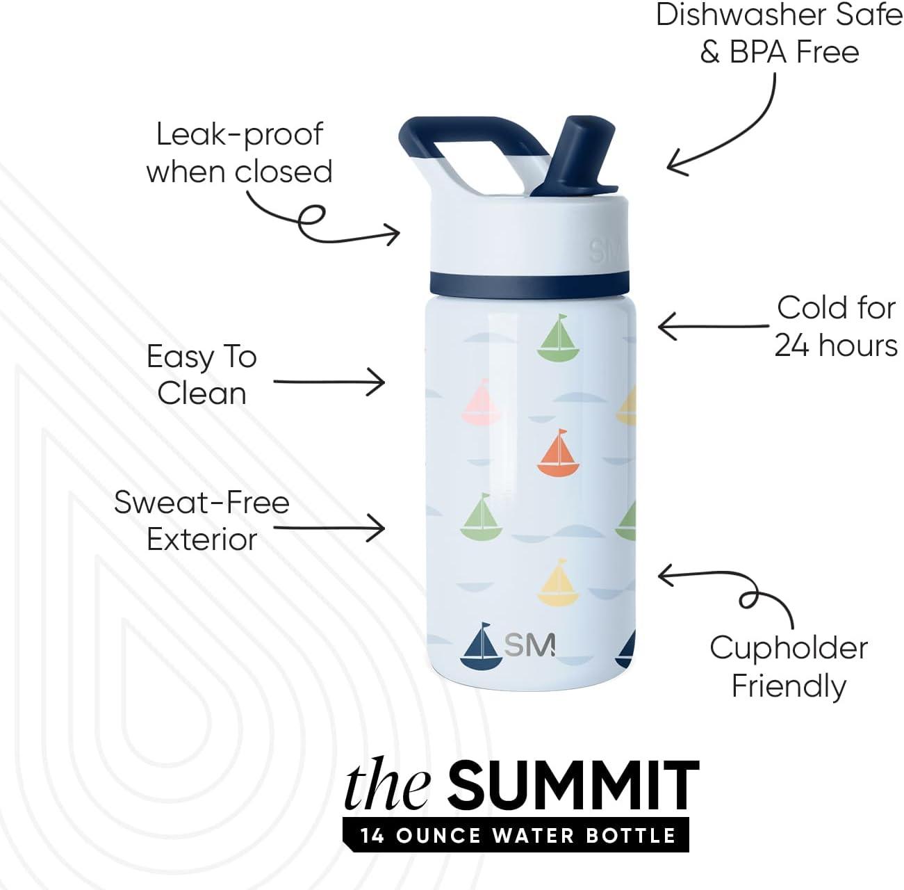 The Simple Modern Summit with Straw Lid for Kids is the perfect vessel for toddlers and youngsters. This dishwasher safe vessel comes with a leak proof straw lid. Double walled, vacuum insulated 18/8 stainless steel keeps your child's water or milk cold for hours.