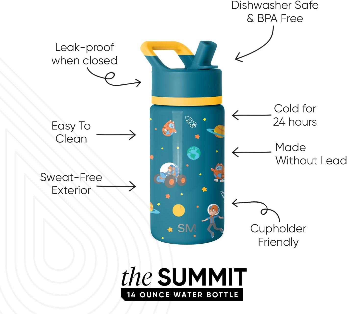 The Simple Modern Summit with Straw Lid for Kids is the perfect vessel for toddlers and youngsters. This dishwasher safe vessel comes with a leak proof straw lid. Double walled, vacuum insulated 18/8 stainless steel keeps your child's water or milk cold for hours.