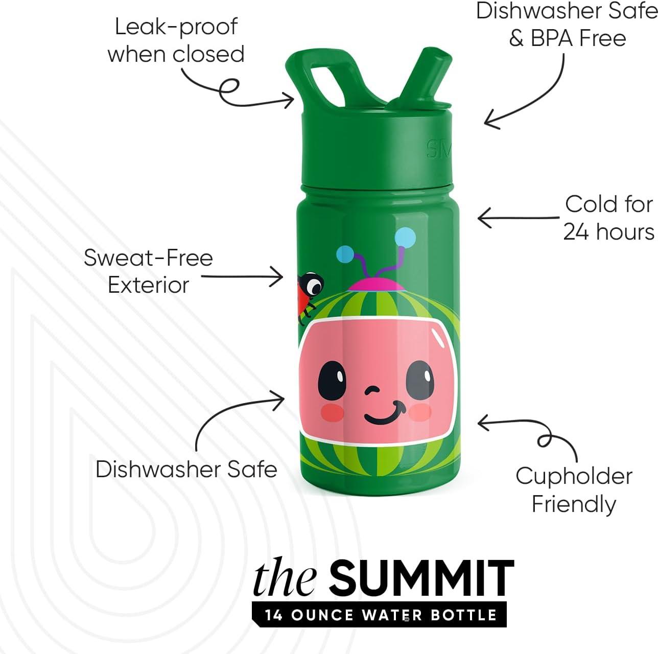 Simple Modern Kids Summit Water Bottle with Straw Lid | Transformers 14oz Stainless Steel Cup Insualted Tumbler for Toddlers, Boys, School | Transformer Bumble Bee(CoComelon Watermelon)