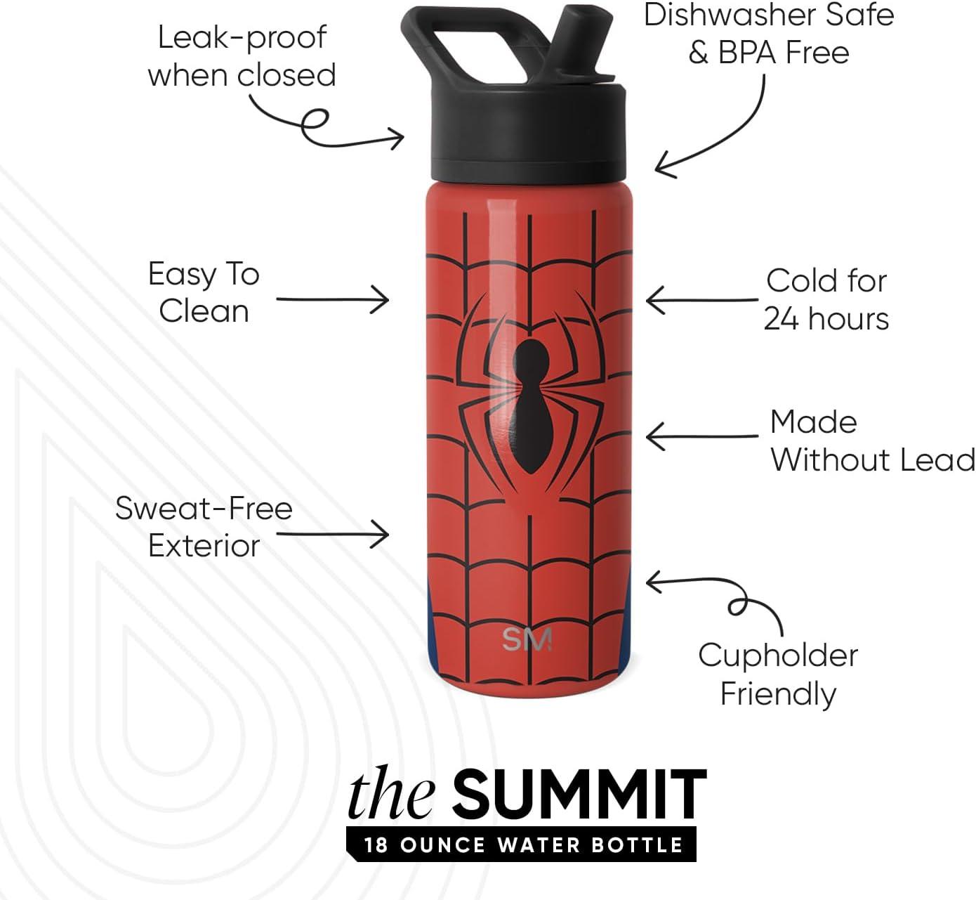 Simple Modern Kids Summit Water Bottle with Straw Lid | Transformers 14oz Stainless Steel Cup Insualted Tumbler for Toddlers, Boys, School | Transformer Bumble Bee(Marvel-Spidey Kid)