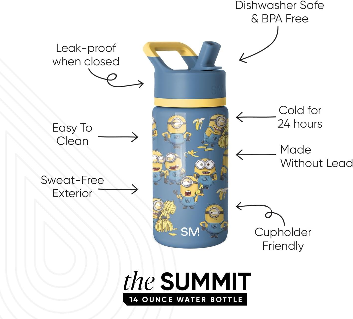 Simple Modern Kids Summit Water Bottle with Straw Lid | Transformers 14oz Stainless Steel Cup Insualted Tumbler for Toddlers, Boys, School | Transformer Bumble Bee(Minions Unite)