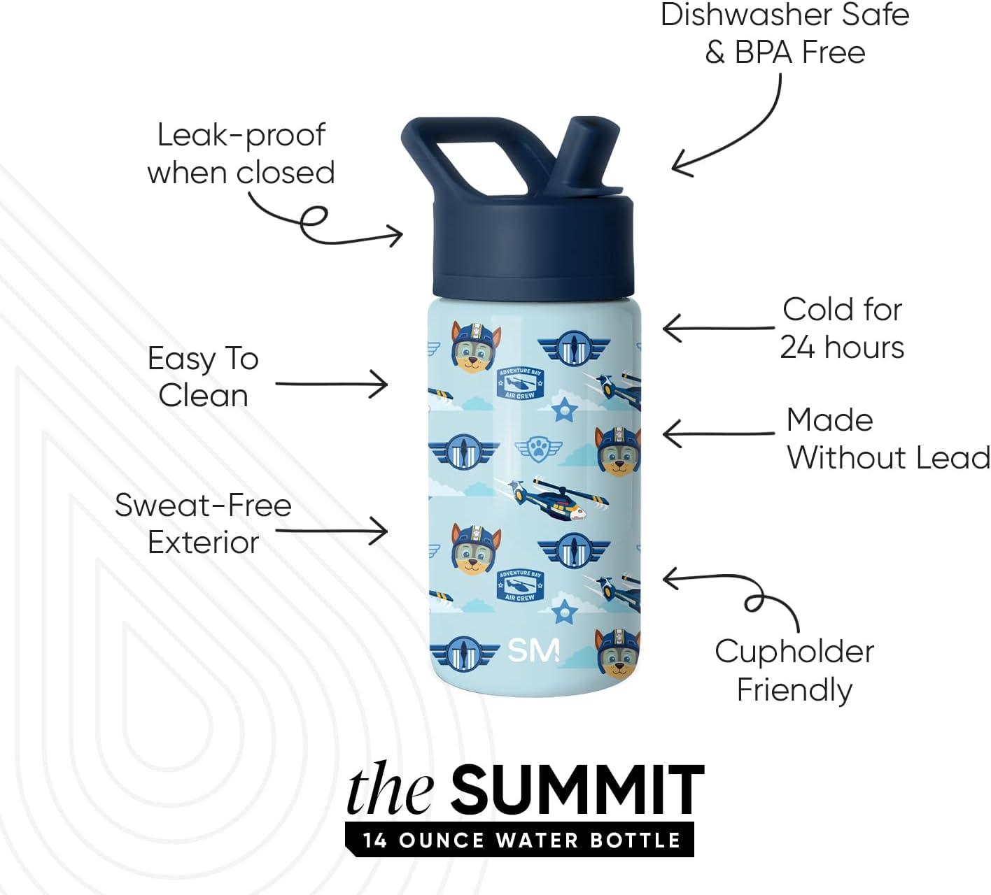 Simple Modern Kids Summit Water Bottle with Straw Lid | Transformers 14oz Stainless Steel Cup Insualted Tumbler for Toddlers, Boys, School | Transformer Bumble Bee(Paw Patrol: Helicopter Chase)