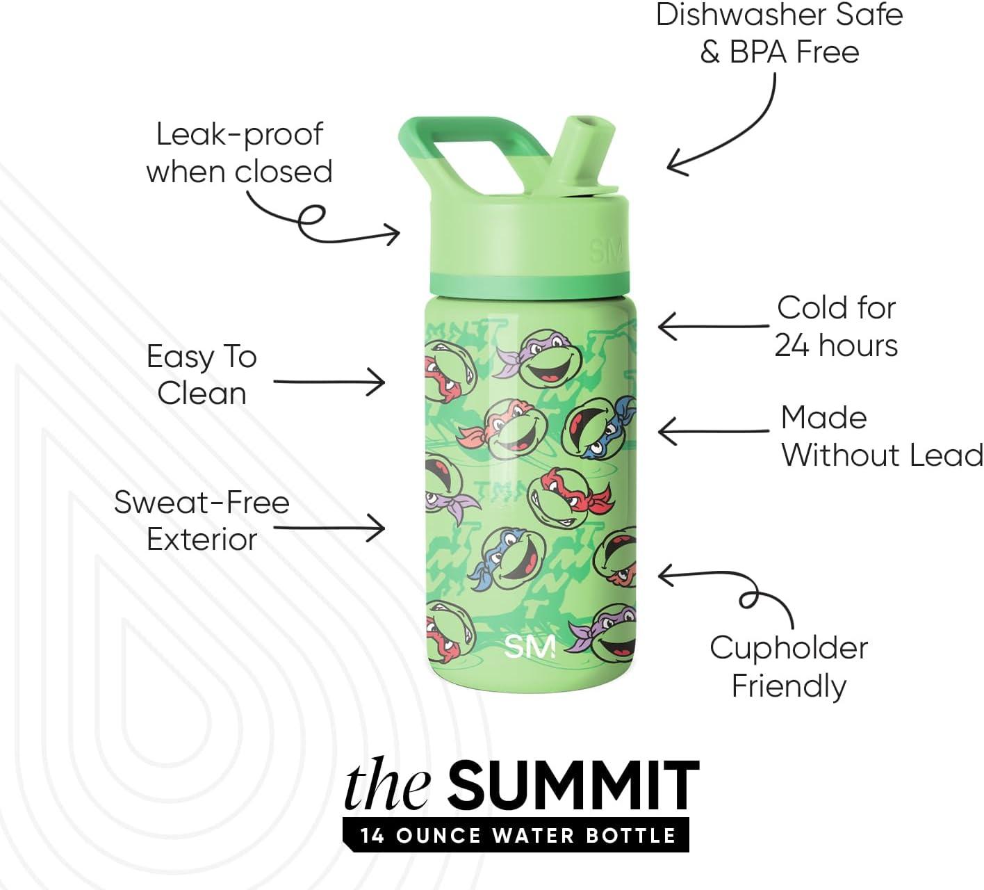Simple Modern Kids Summit Water Bottle with Straw Lid | Transformers 14oz Stainless Steel Cup Insualted Tumbler for Toddlers, Boys, School | Transformer Bumble Bee(TMNT: Mutant Ooze)