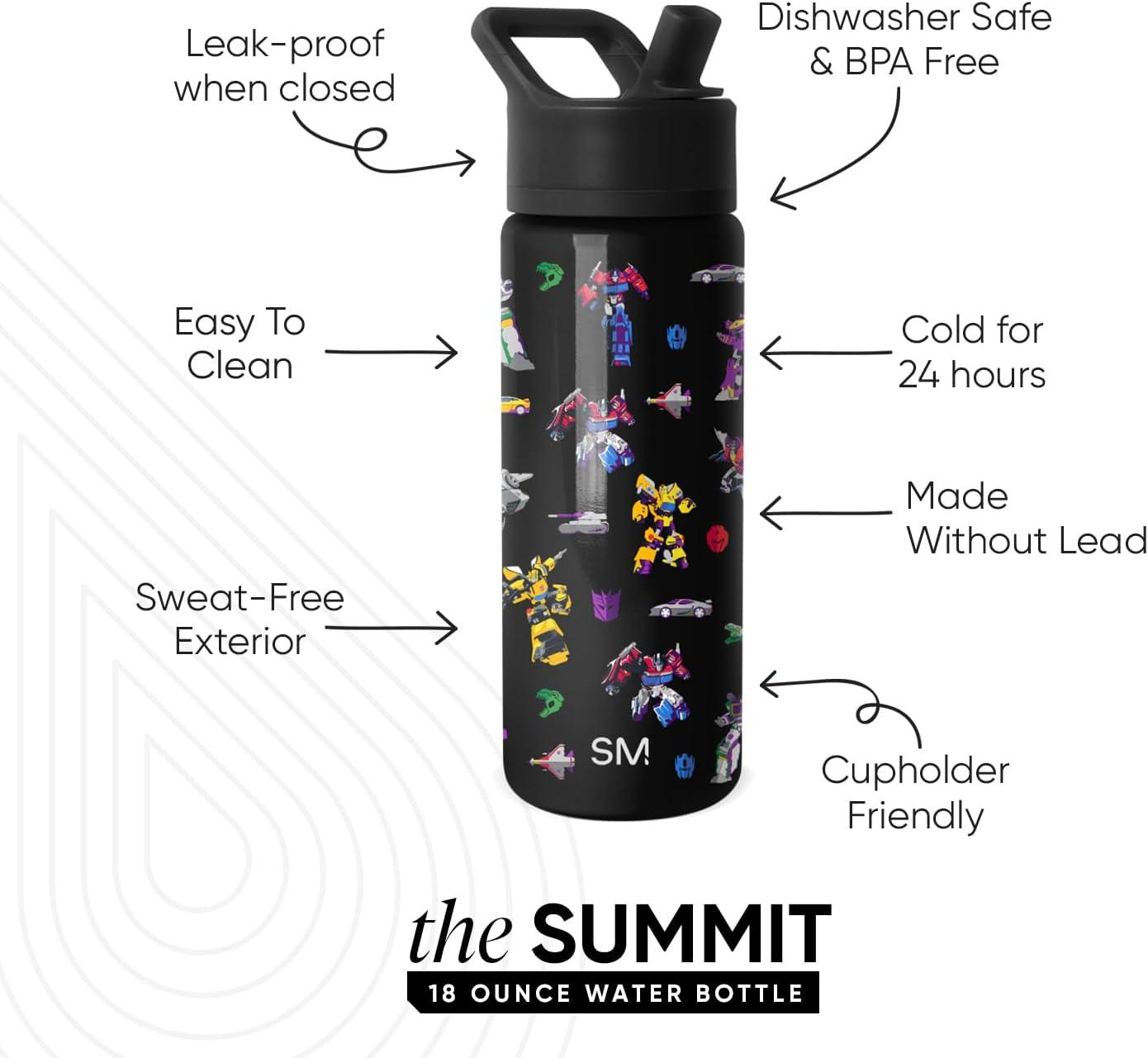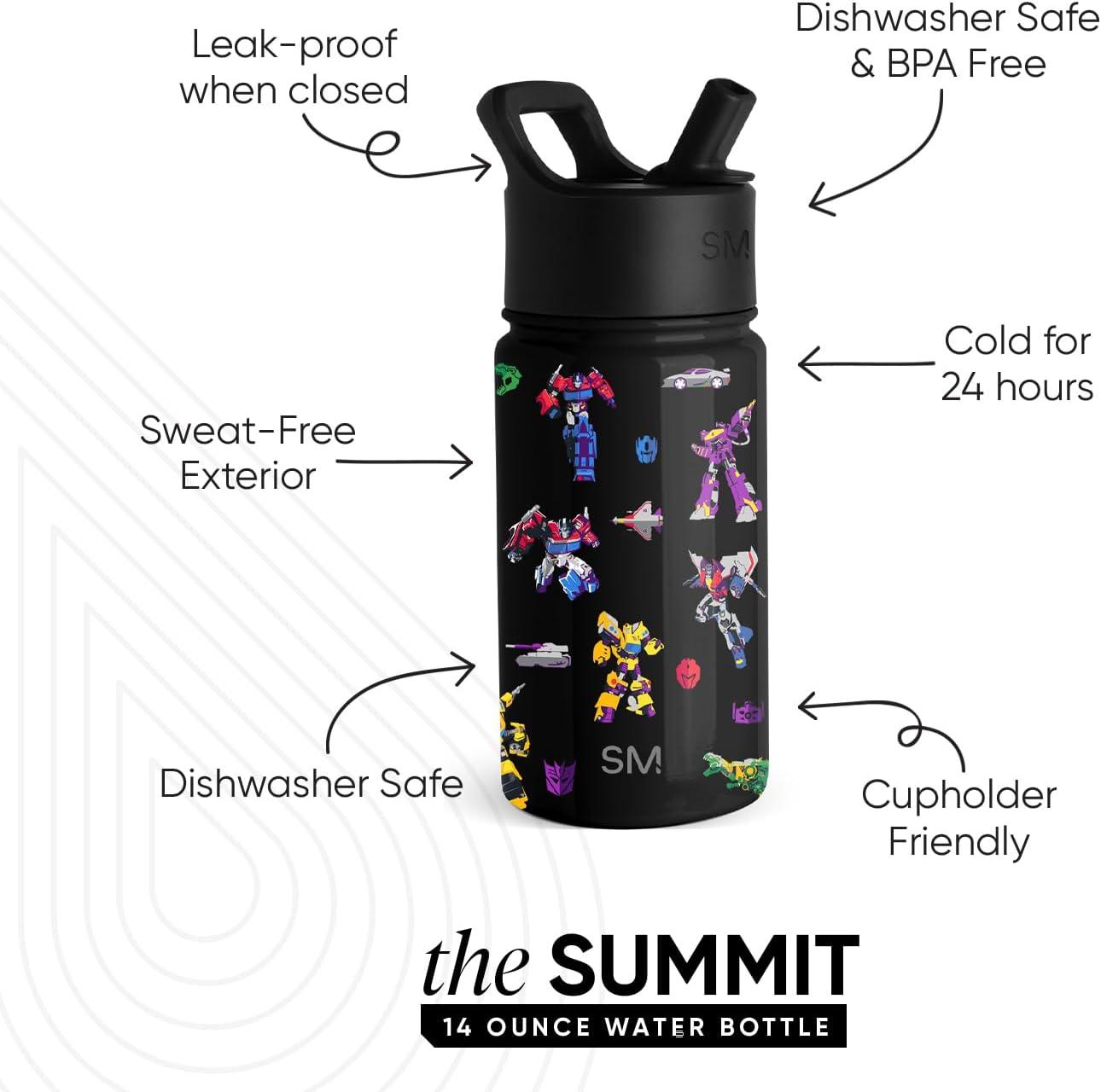 Simple Modern Kids Summit Water Bottle with Straw Lid | Transformers 14oz Stainless Steel Cup Insualted Tumbler for Toddlers, Boys, School | Transformer Bumble Bee(Transformer: Bumble Bee)