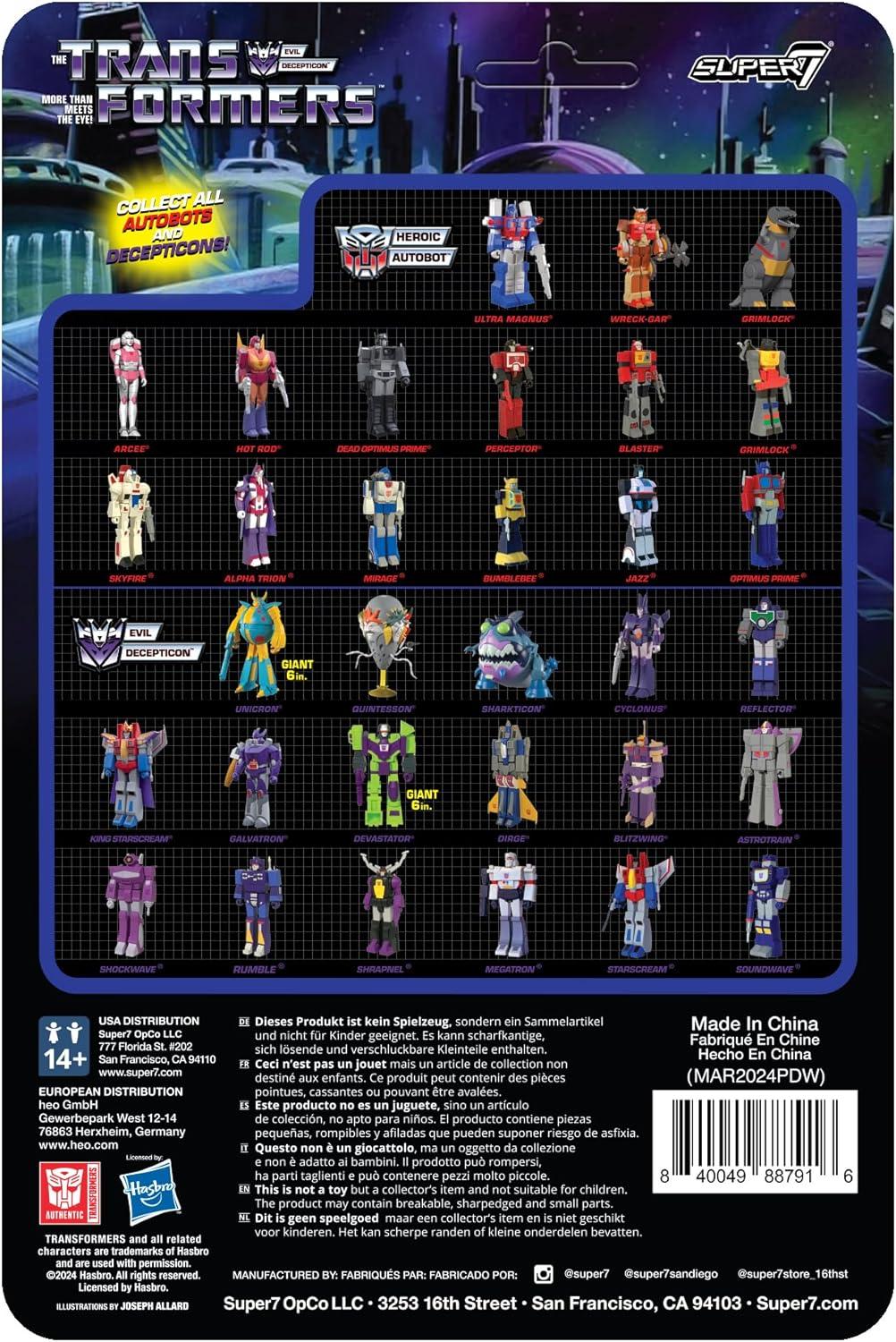 “Robots in disguise!” The Super7 Transformers collaboration expands as more Autobots and Decepticons join the ReAction figure world! Devastator, the evil Decepticon combiner, towers over his foes as the first 6” tall ReAction figure and comes armed with his magna laser action figure accessory on a matching larger card back featuring new retro-style art! Bring your collection to new heights today with this ReAction figure of Devastator! Super7 makes retro collectibles, vintage toys, and nostalgia gifts for pop culture fanatics and collectors. We grew up with giant monsters, comic books, punk, science fiction, skateboarding, robots, and rebellion. No one made what we wanted. So we made it ourselves.