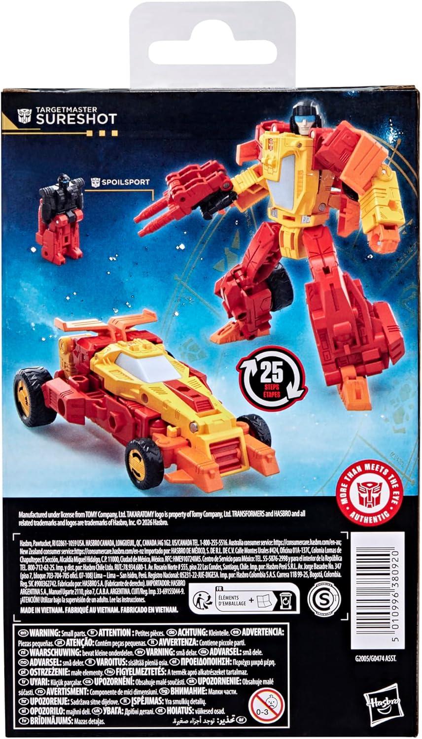 CONVERTING SPOILSPORT MINI ACTION FIGURE: Comes with a mini Spoilsport figure that converts into a blaster the Targetmaster Sureshot figure can hold