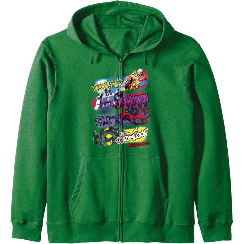 Transformers Classic Characters Graffiti Panels Mashup Zip Hoodie(Dark Green)