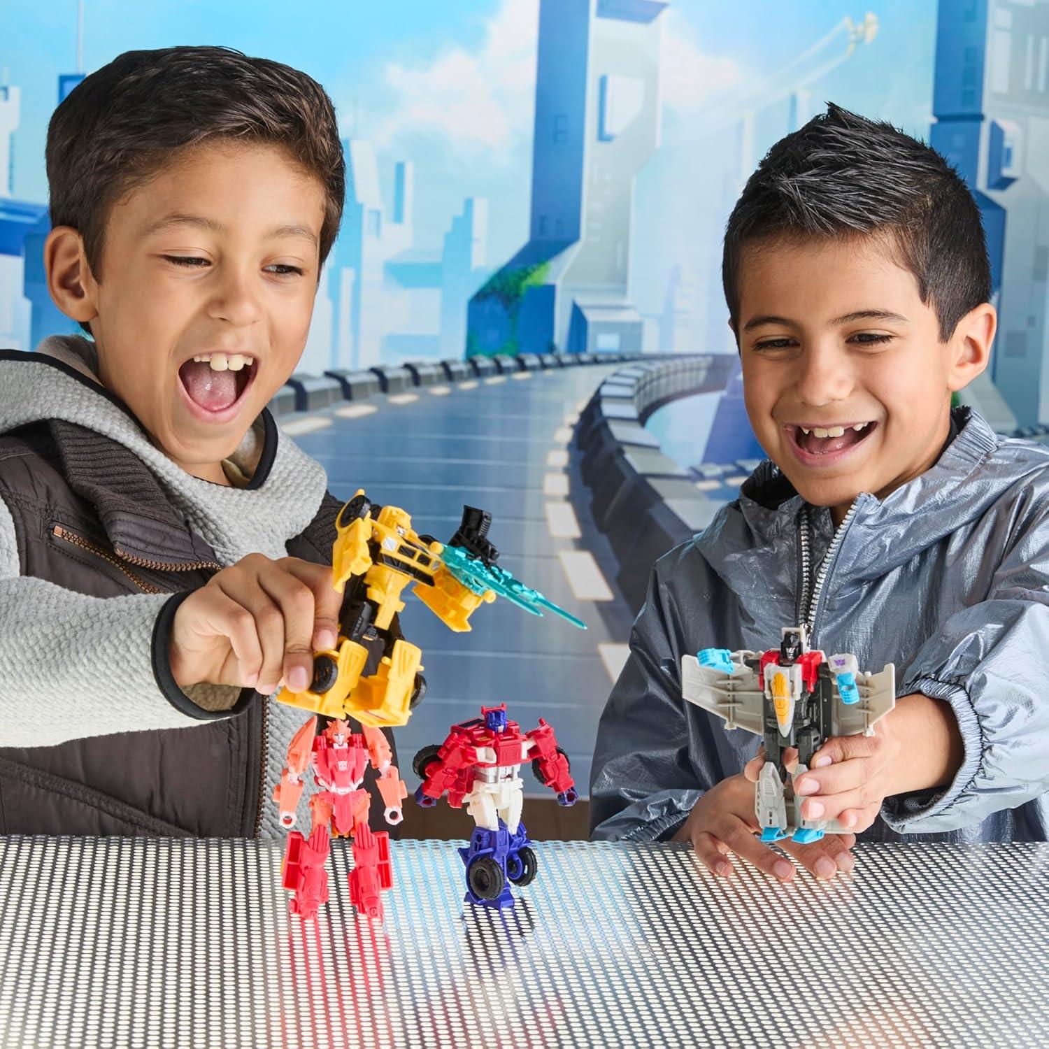 In Transformers CYBERWORLD, kids decide what happens — and it starts with awesome toys like the Optimus Prime Cyber Changers figure. This 4-inch (10 cm) Optimus Prime toy changes from robot to truck mode in just 4 steps that are simple enough for kids ages 6 and up. Give kids’ storytelling power a boost with additional CYBERWORLD toys (each sold separately, subject to availability), and discover unique characters, alt modes, environments, and more. Fans of Transformers collectibles and newcomers alike will love discovering this take on the Transformers universe, where the only constant is change. TRANSFORMERS and HASBRO and all related trademarks and logos are trademarks of Hasbro, Inc. There's a Transformers figure for every kid or collector. From big converting action figures to miniature battling robots to figures that change between modes in 1 step, you can team up with Transformers toys to create your own incredible adventures. Whether you're defending Earth with the Autobots, or conquering space with the Decepticons, the action is up to you. Transformers is a world-famous entertainment brand with 30 years of history, blockbuster movies, hit television shows and countless novels and comic books. With Transformers robot toys, you can create your own chapters in this epic, ongoing story. Transformers and all related characters are trademarks of Hasbro. This copy is intended as placeholder text only and is not representative of individual items in the line. Hasbro and all related terms are trademarks of Hasbro.