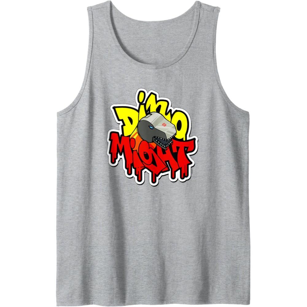 Transformers Dino Might Grimlock Dripping Graffiti Logo Tank Top(Heather Grey)