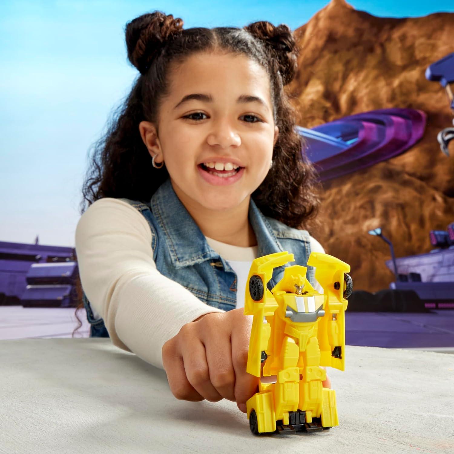 Smash into action with the Transformers: EarthSpark 1-Step Smash Changer Bumblebee action figure! Convert this Transformers action figure from car mode into robot mode by smashing it on a flat surface! The car toy pops up into a robot toy! With a 1-step manual conversion, kids can change it from robot back to car—then smash again for super satisfying, fidgety play! Look for more 1-Step Smash Changers Transformers figures (each sold separately, subject to availability) featuring popular characters from the Transformers: EarthSpark show, an animated series that centers on two human kids as they forge a connection with Transformers robots like never before and work alongside fan favorites like Optimus Prime and Megatron! Small action figures like these 1-Step Smash Changers make great stocking stuffers or small gifts for kids 6 and up! TRANSFORMERS and HASBRO and all related trademarks and logos are trademarks of Hasbro, Inc.