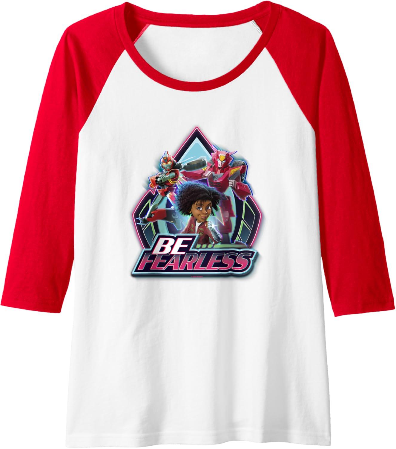 imageTransformers EarthSpark Group Shot Be Fearless Raglan Baseball TeeRedWhite