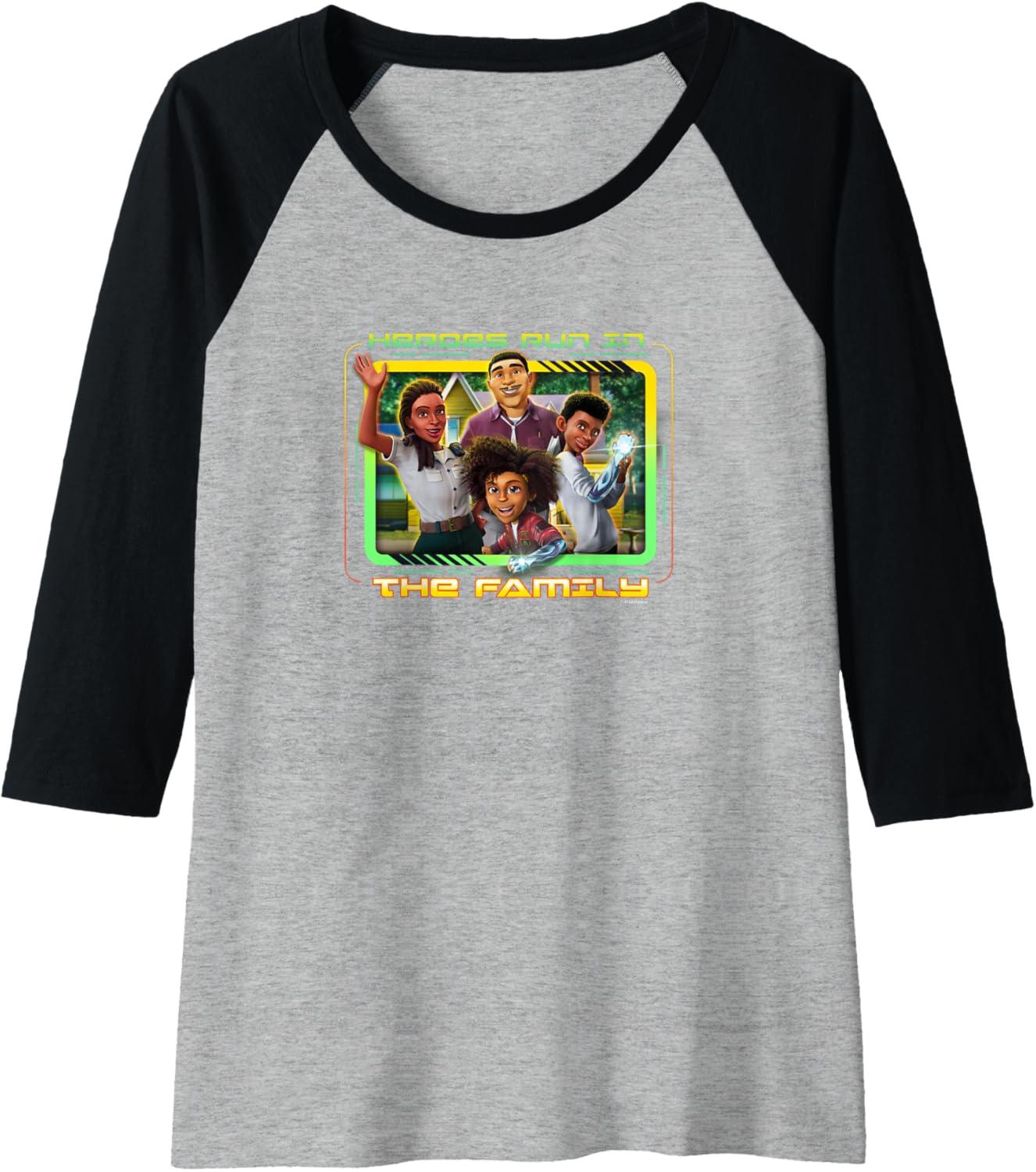 imageTransformers EarthSpark Heroes Run In The Family Raglan Baseball TeeBlackAthletic Heather