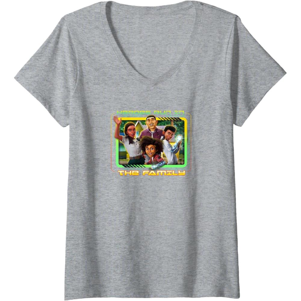 Transformers: EarthSpark Heroes Run In The Family V-Neck T-Shirt(Heather Grey)