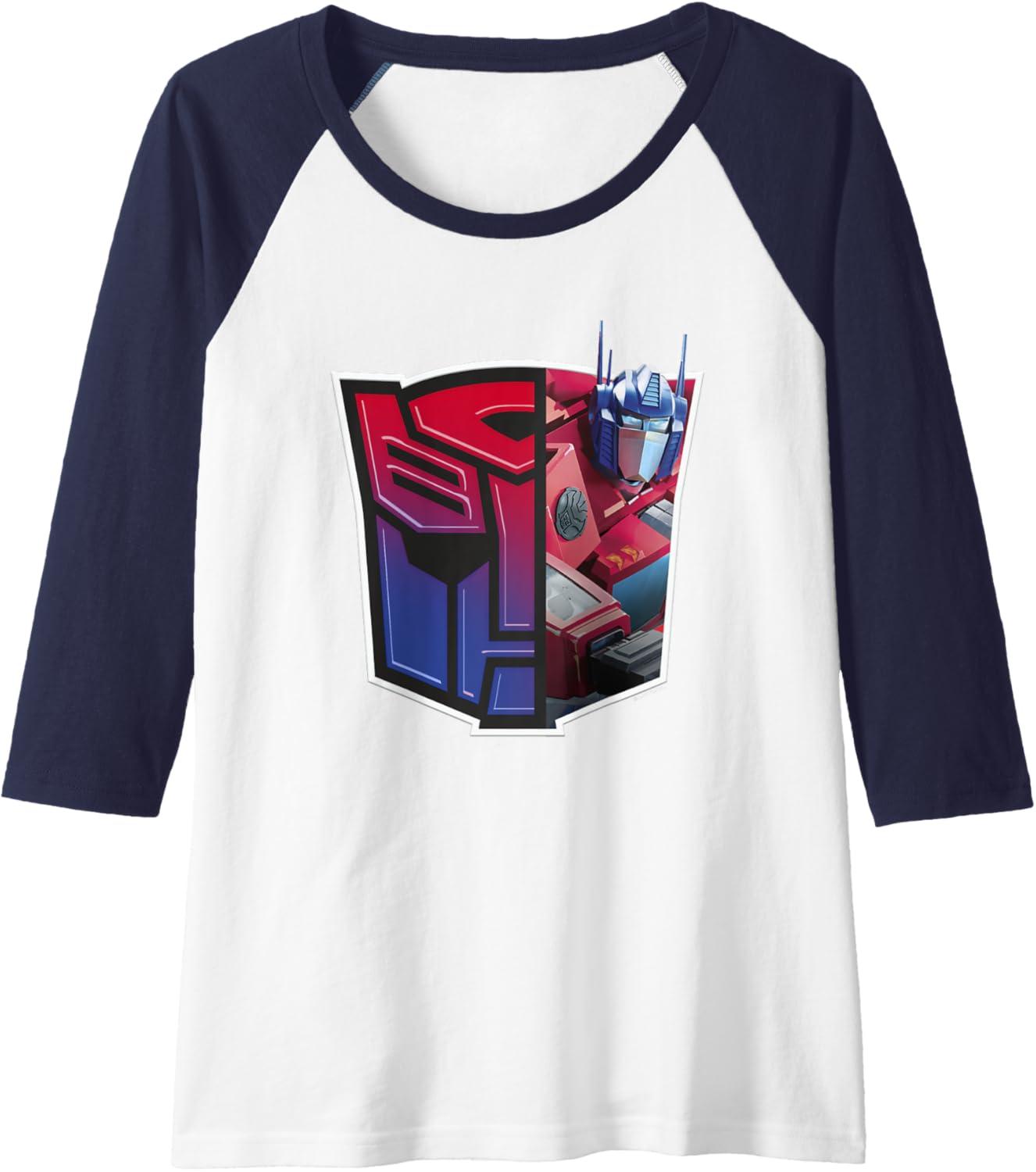Transformers: EarthSpark Optimus Prime Logo Fill Raglan Baseball Tee(Navy Blue/White)