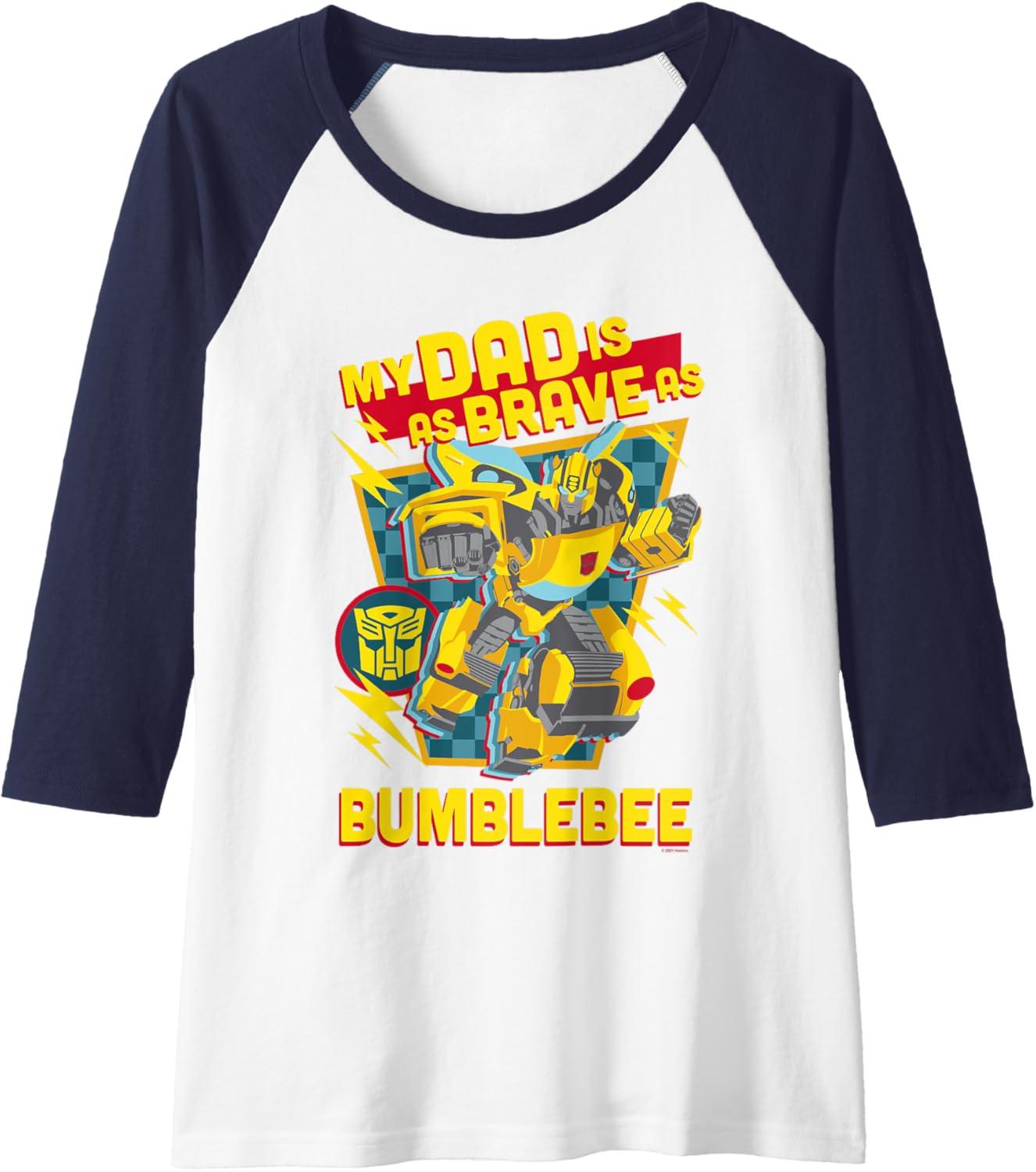imageTransformers Fathers Day Bumblebee My Dad Is Brave Raglan Baseball TeeNavy BlueWhite
