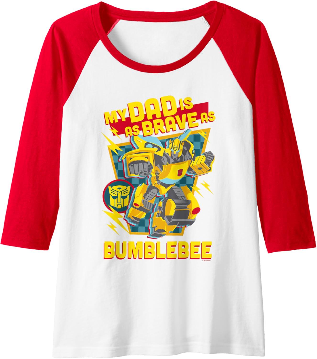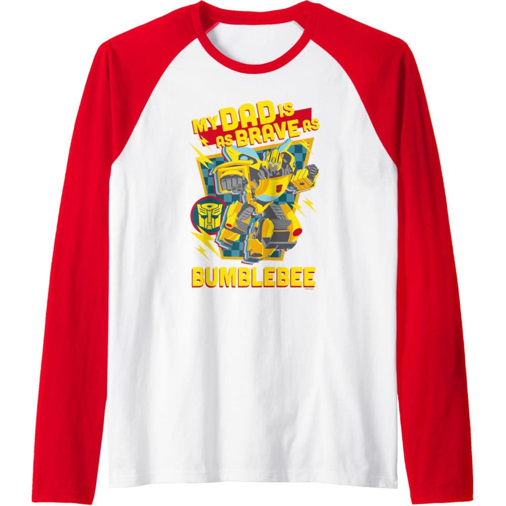 Transformers Father’s Day Bumblebee My Dad Is Brave Raglan Baseball Tee(Red/White)