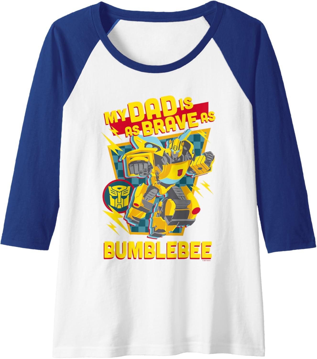 imageTransformers Fathers Day Bumblebee My Dad Is Brave Raglan Baseball TeeRoyal BlueWhite