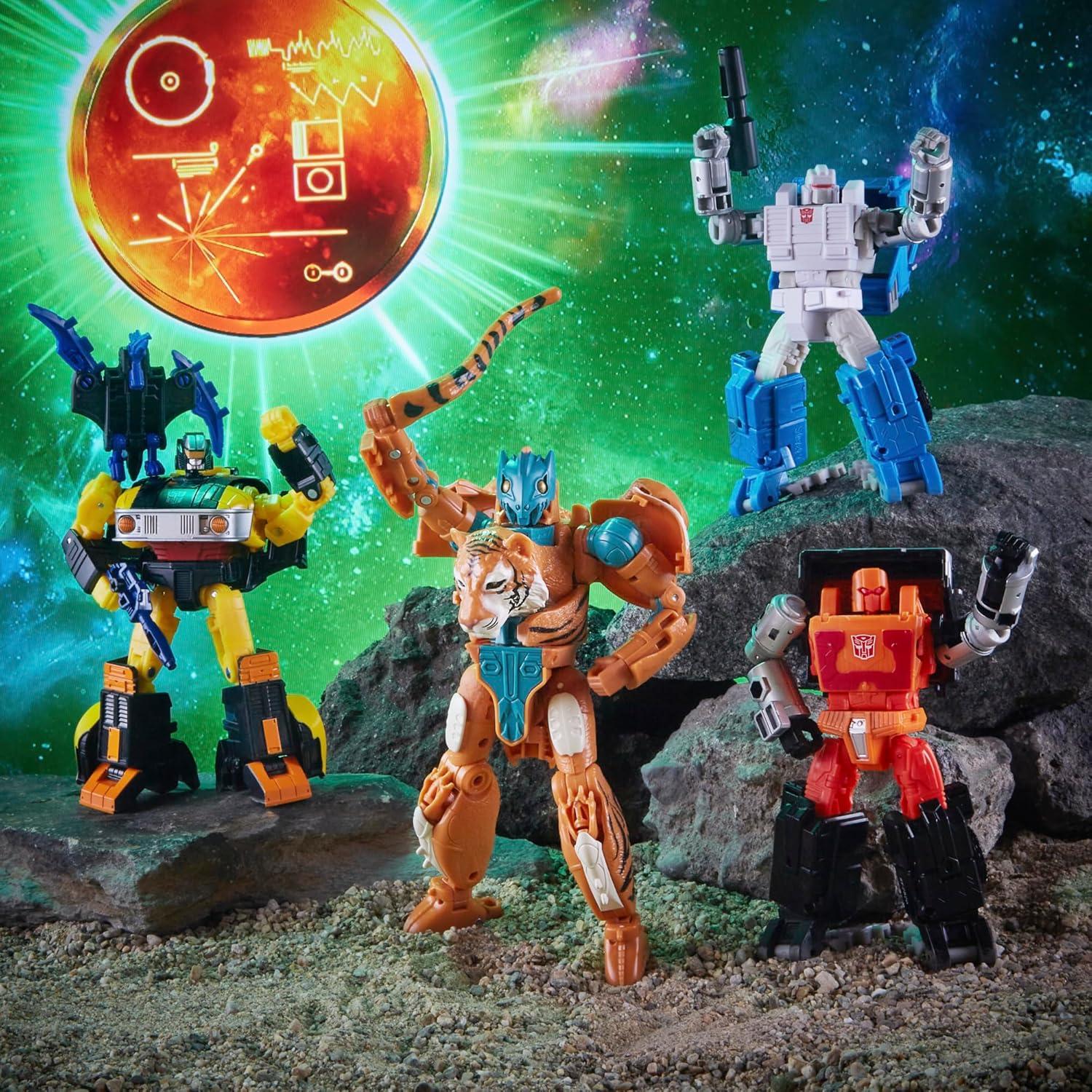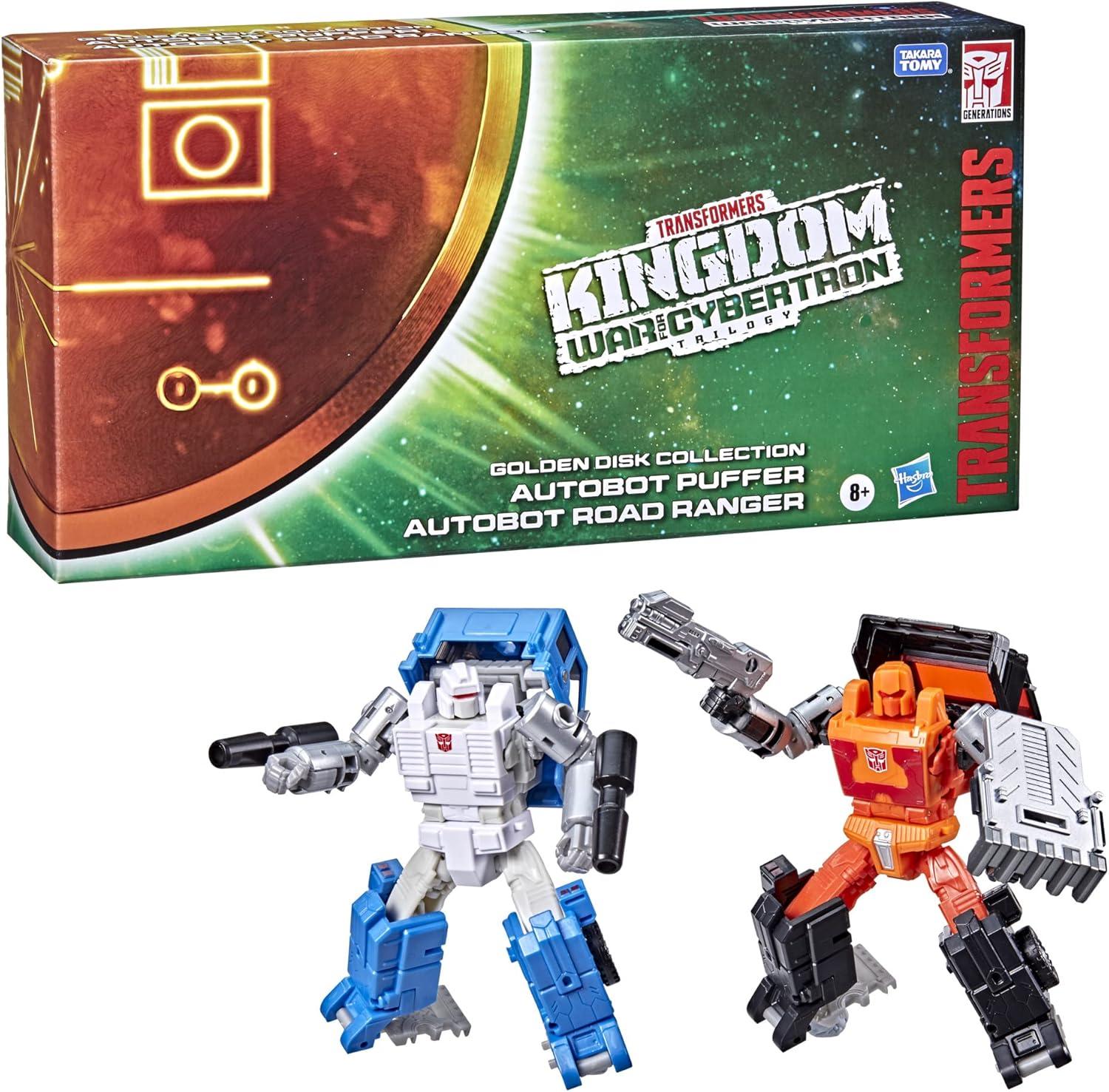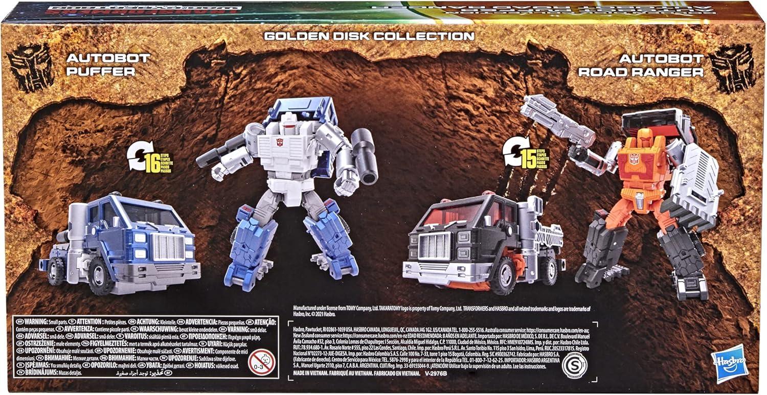 The Golden Disk is a powerful artifact with the ability to reveal knowledge of the past, the future, and of the infinite possible destinies throughout time. Discover an alternate timeline in which the quantum surge that mutated many Maximals and Predacons into Transmetals, goes very differently… The quantum surge causes a time vortex, intercepting the GoBot Road Ranger and the Autobots Pipes and Huffer, pulling them through time and space. During the wild journey through the vortex, Huffer and Pipes fuse and arrive on prehistoric Earth as Puffer. Autobot Road Ranger, the GoBot you were waiting for, and Autobot Puffer figures convert into their truck modes in 15 and 16 steps. Autobot Road Ranger comes with blaster and shield accessories, features deco based on his 2004 GoBots release. Autobot Puffer comes with 2 blaster accessories and features a fun fan nod (insert nod here). The Golden Disk Collection includes 4 exciting packs, featuring fan-favorite characters involved in the mysterious story of an alternate timeline! (Each sold separately. Subject to availability)