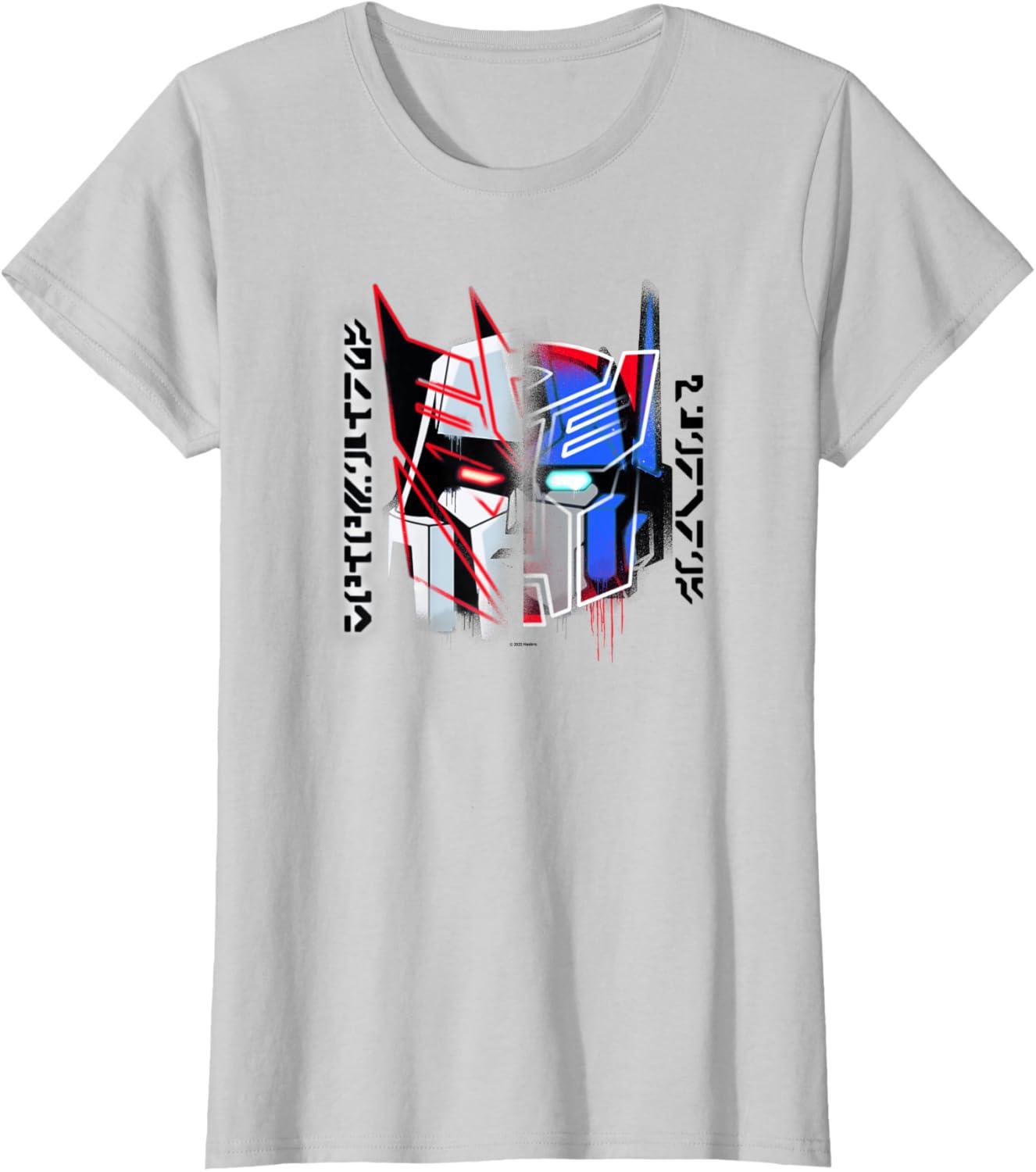 Transformers Good Vs. Evil Split Face Graffiti Retro Poster T-Shirt(Silver Grey)