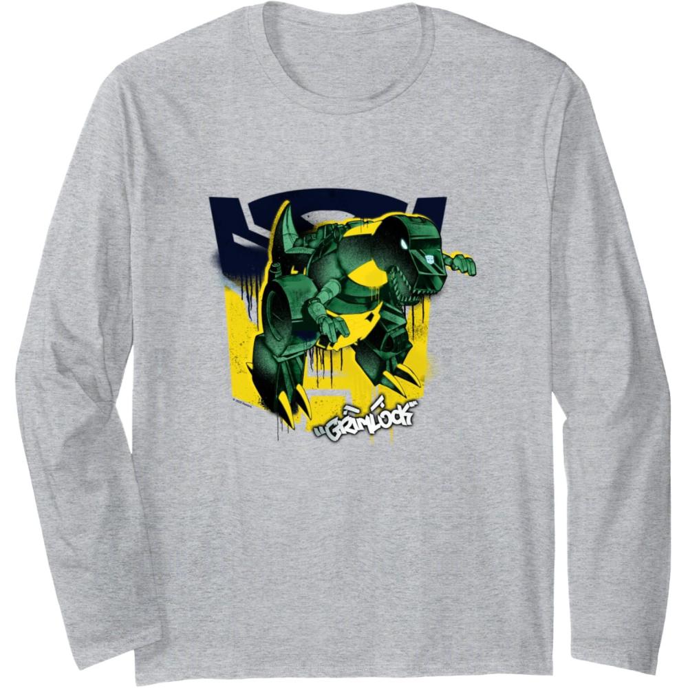 Transformers Grimlock Graffiti Painted Wall Retro Portrait Long Sleeve T-Shirt(Heather Grey)