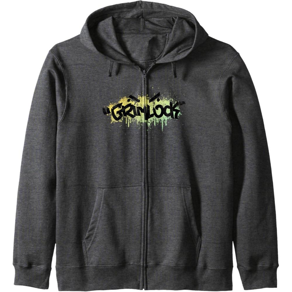 Transformers Grimlock Urban Style Graffiti Text Logo Zip Hoodie(Dark Heather Grey)