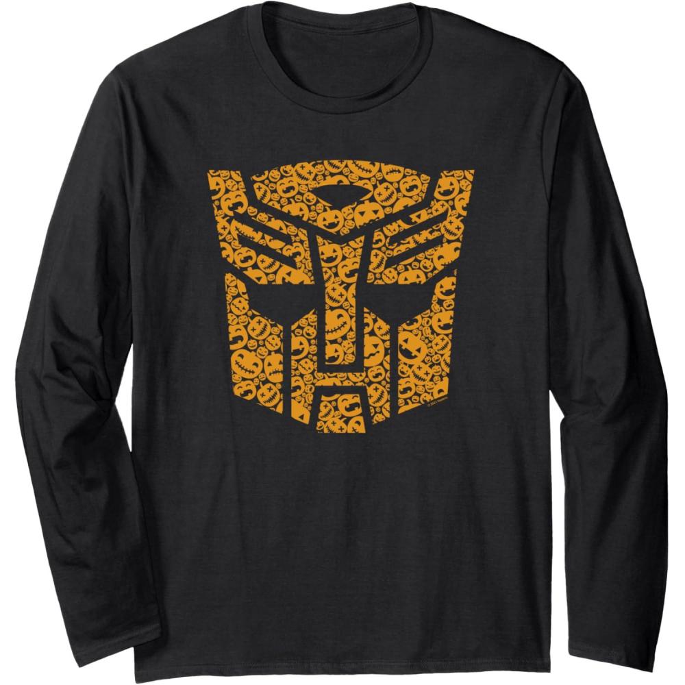 Transformers Halloween Autobot Pumpkin Fill Mask Long Sleeve T-Shirt(Black)