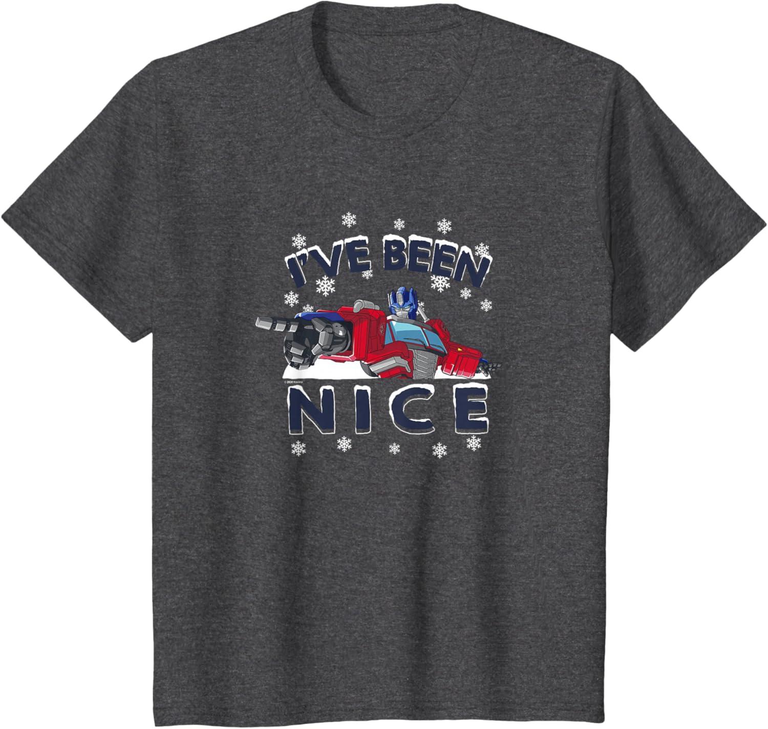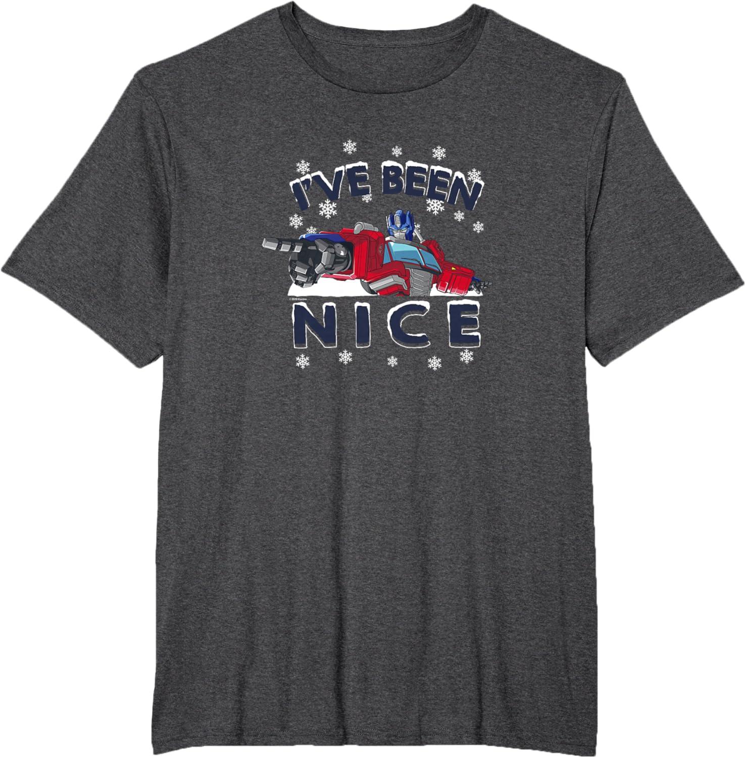 Transformers I’ve Been Nice Optimus Prime Portrait T-Shirt(Dark Heather Grey)