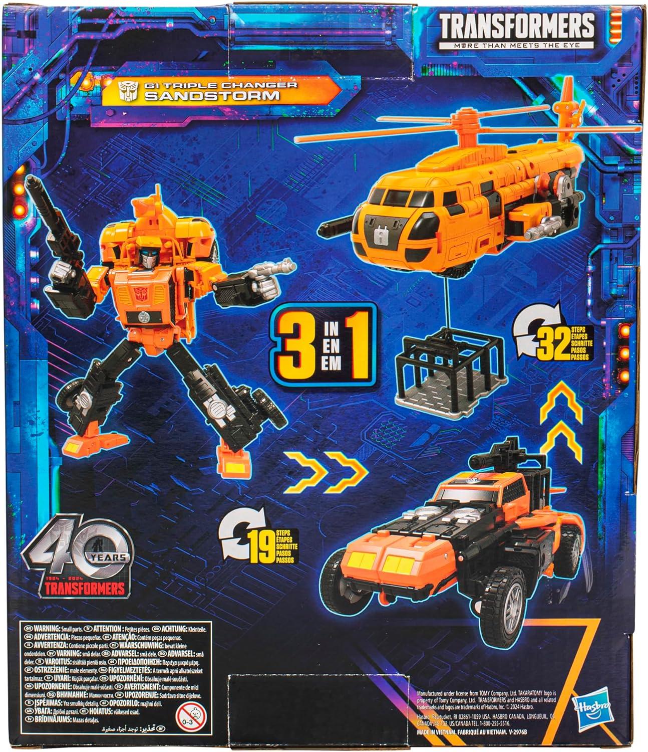 Unite your favorite characters from across the world of Transformers robots into your collection with the Transformers Legacy United Leader Class G1 Triple Changer Sandstorm action figure! This 7.5-inch G1 Triple Changer Sandstorm action figure converts between robot, dune buggy, and helicopter modes. Gear up for battle with the included blaster and rescue stretcher accessories that attach in both modes. The G1 Triple Changer Sandstorm figure is inspired by the character from the animated series, The Transformers, and features articulated head, arms, and legs for awesome action poses. Celebrate the last 40 years of Transformers history with Transformers Legacy action figures. Transformers Legacy opens the portal to a whole new universe of — More Than Meets the Eye — bringing together every Transformers generation like you’ve never seen before. Collect and combine different characters to create your ideal Legacy lineup. TRANSFORMERS and HASBRO and all related trademarks and logos are trademarks of Hasbro, Inc. © 2024 Hasbro.