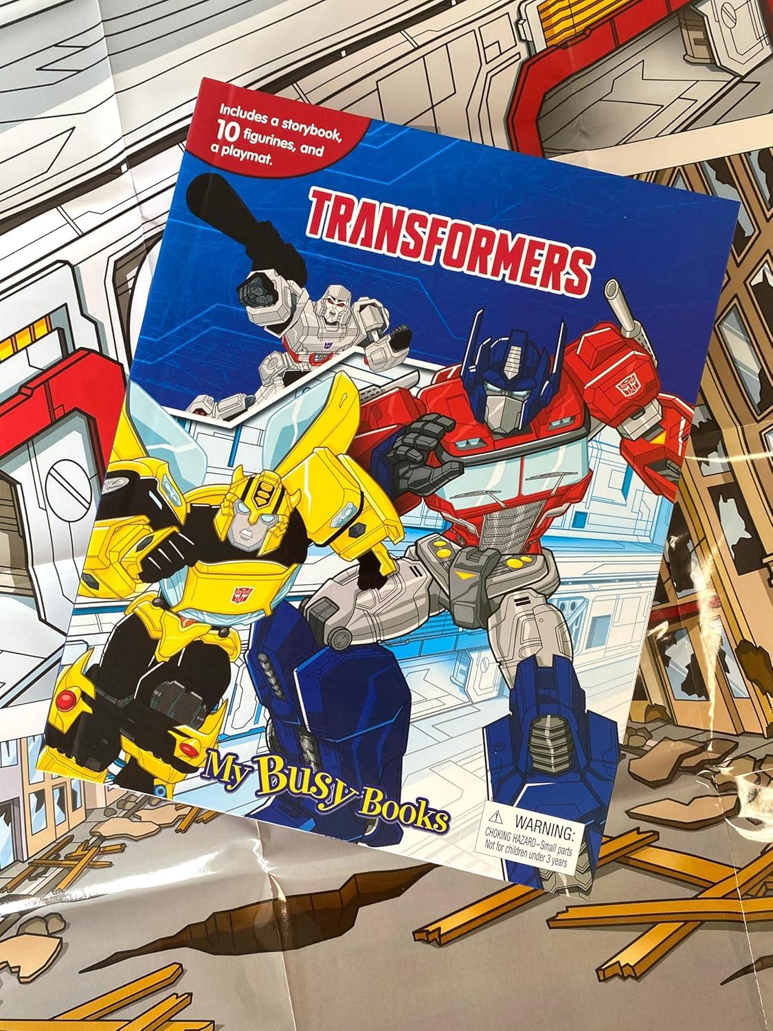 Transformers My Busy Books - Storybook, 10 figurines, playmat
