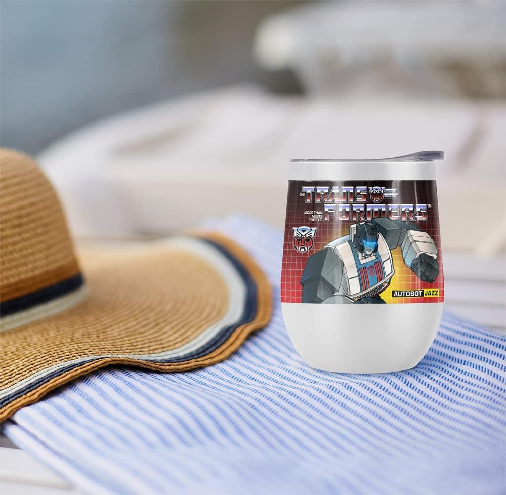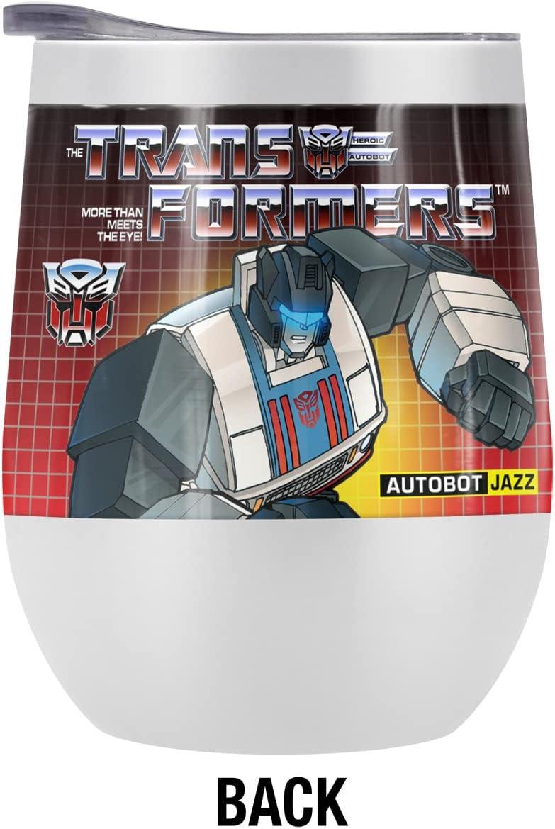 Transformers OFFICIAL Bumblebee 12 oz Stemless Tumbler, Stainless Steel Travel Cup|Lake Tumbler|Insulated with Leak Resistant Slide-Lock Lid(JAZZ WHITE)
