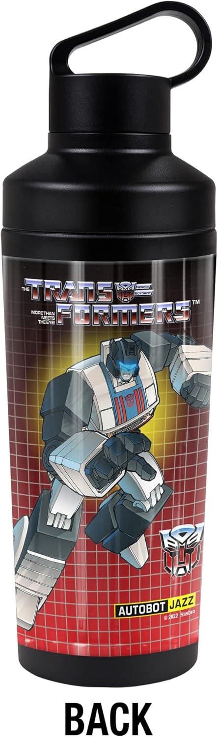 Transformers OFFICIAL Bumblebee 18 oz Insulated Water Bottle, Leak Resistant, Vacuum Insulated Stainless Steel with 2-in-1 Loop Cap(JAZZ BLACK)