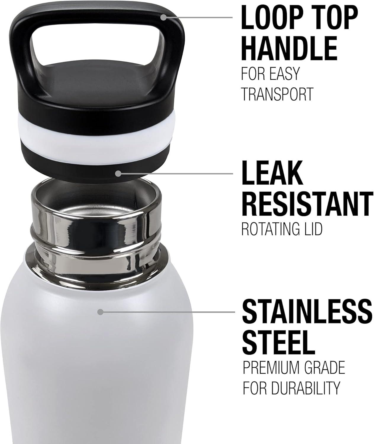 SWEATPROOF CONSTRUCTION: Fabricated from pro grade 18/8 powder-coated stainless steel, our sweat-proof canteen keeps condensation away. Refillable and reusable, our bottle features an easy-open screw-top design.