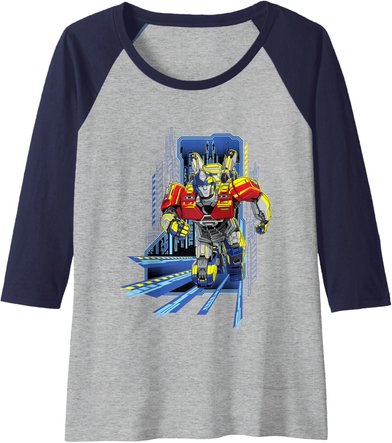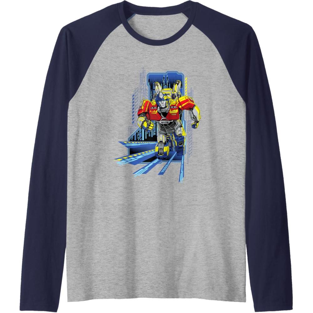Transformers One Orion Pax Running Action Shot Raglan Baseball Tee(Navy Blue/Athletic Heather)
