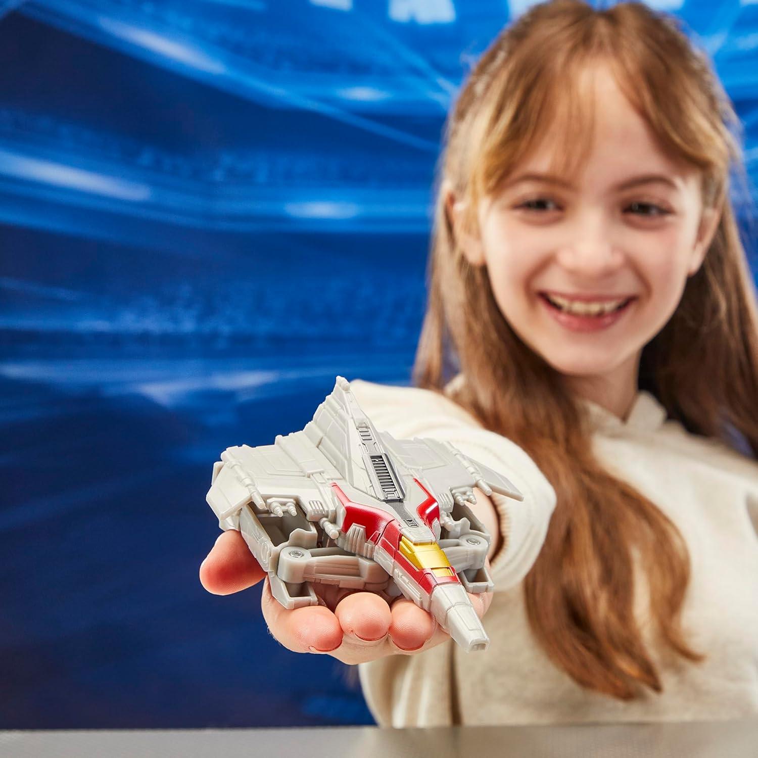 Experience the epic origins of legendary Transformers robots with these Transformers One Battling Robots action figures! This 4.5-inch (11.5 cm) Starscream figure converts from robot to Cybertronian jet mode in 4 steps, with simple conversion perfect for Transformers fans age 6 and up. Place the action figure on the Battle Base and slide the finger slots for cool action moves! The figure has articulated head, arms, and legs for awesome action poses. Includes a Battle Base and a sword that attaches in robot mode. This Robot Battlers action figure is inspired by an iconic character from the Transformers movie, Transformers One. Movie-inspired Interactive toys make cool gifts for boys and girls ages 6 and up. Transformers One is the untold origin story of Optimus Prime and Megatron, once friends bonded like brothers, who changed the fate of Cybertron forever. TRANSFORMERS and HASBRO and all related trademarks and logos are trademarks of Hasbro, Inc. © 2024 Hasbro. © 2024 Paramount Pictures Corporation. All Rights Reserved.