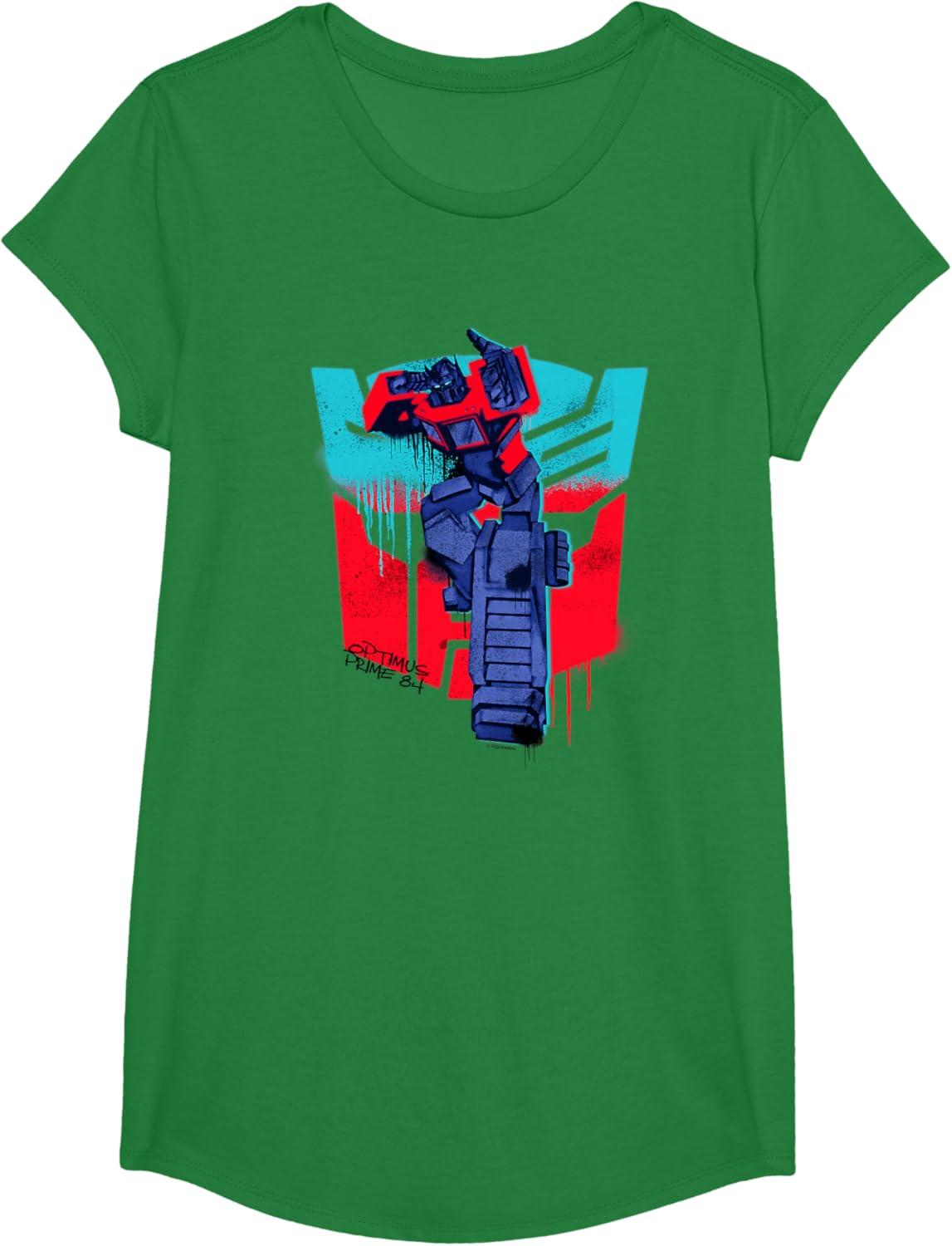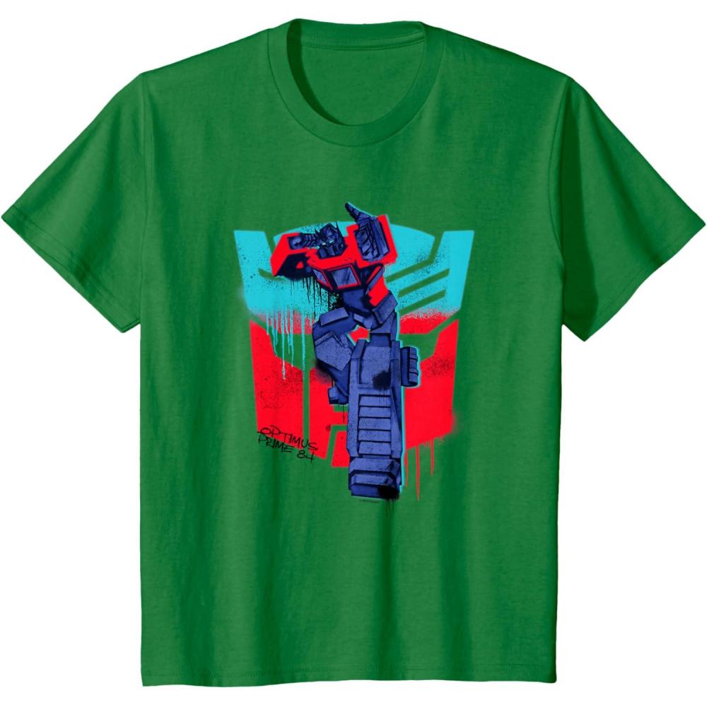 Transformers Optimus Prime 84 Graffiti Painted Wall Portrait T-Shirt(Kelly Green)