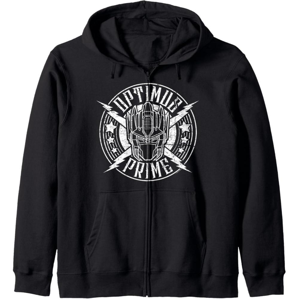 Transformers Optimus Prime Vintage Rock Lightning Logo Zip Hoodie(Black)