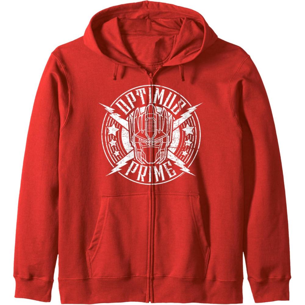 Transformers Optimus Prime Vintage Rock Lightning Logo Zip Hoodie(Red)