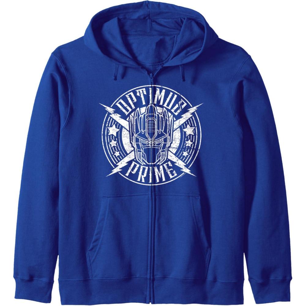 Transformers Optimus Prime Vintage Rock Lightning Logo Zip Hoodie(Royal Blue)