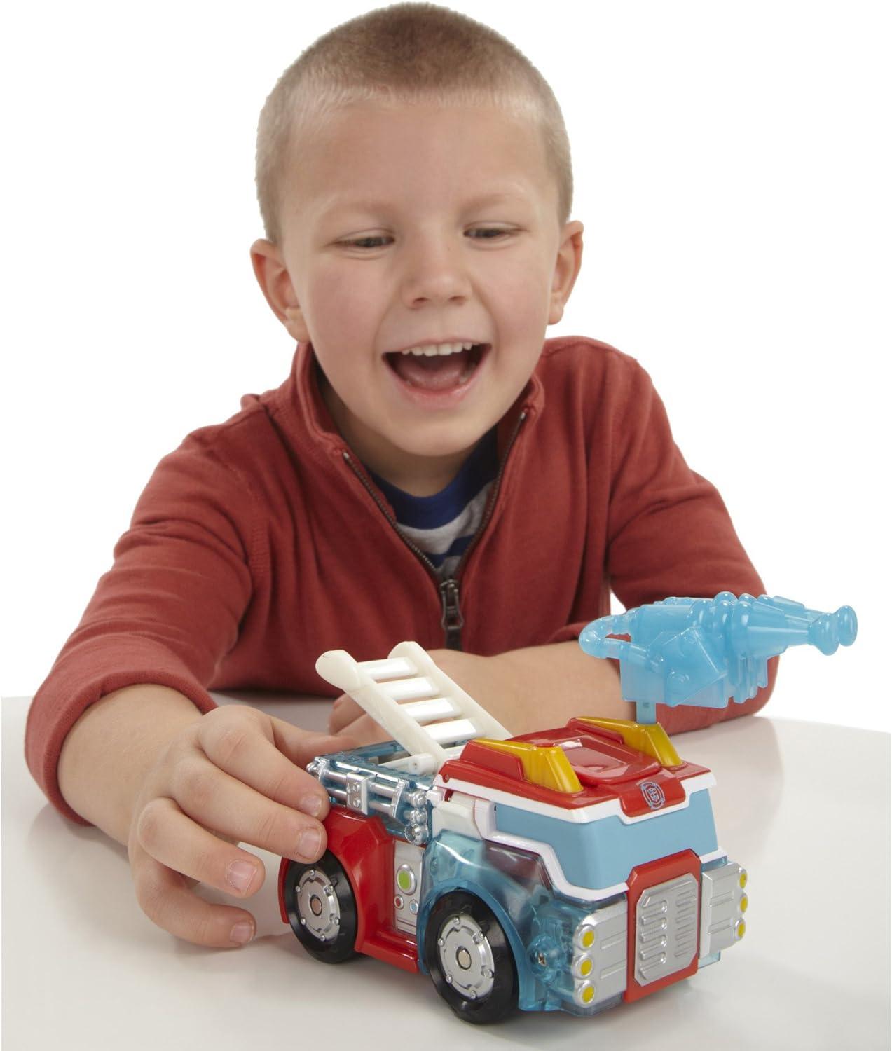 This classic Transformers Rescue Bots Heatwave the Fire-Bot toy is sized right for small hands and designed with Easy 2 Do conversion. It takes just 1 easy step for little heroes to convert the heroic Heatwave the Fire-Bot action figure from robot mode to fire truck mode and back! The Heatwave the Fire-Bot toy robot comes with an Energize water cannon accessory that attaches to the fire truck’s cab in vehicle mode. In robot mode, the figure holds the water cannon! A great gift for kids ages 3 and up, both boys and girls will love pretending to roll to the rescue with the Playskool Heroes converting Heatwave the Fire-Bot toy!Manufactured under license from TOMY. Transformers Rescue Bots is a trademark and copyright of Hasbro.