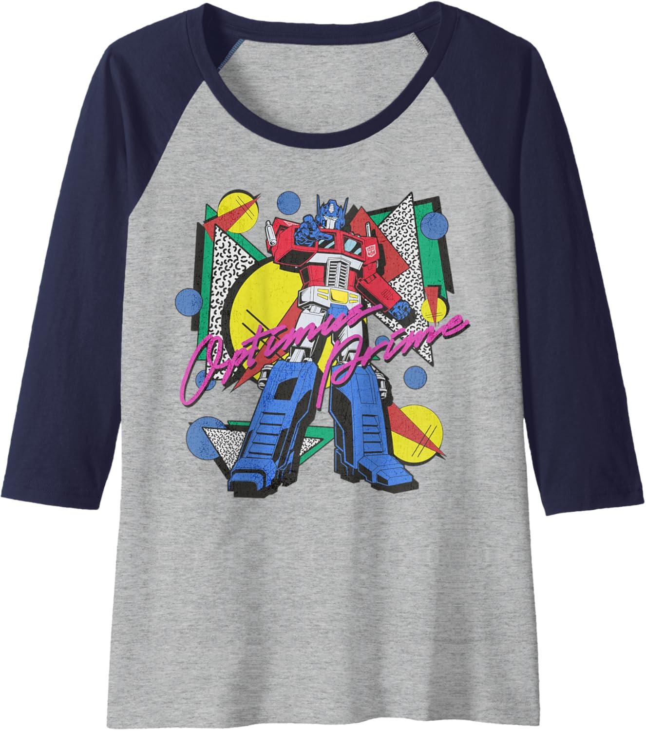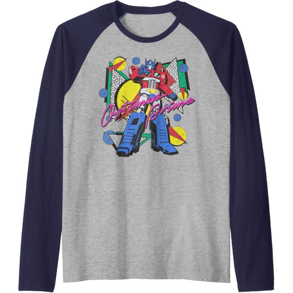 Transformers Retro Optimus Prime 80’s Print Raglan Baseball Tee(Navy Blue/Athletic Heather)