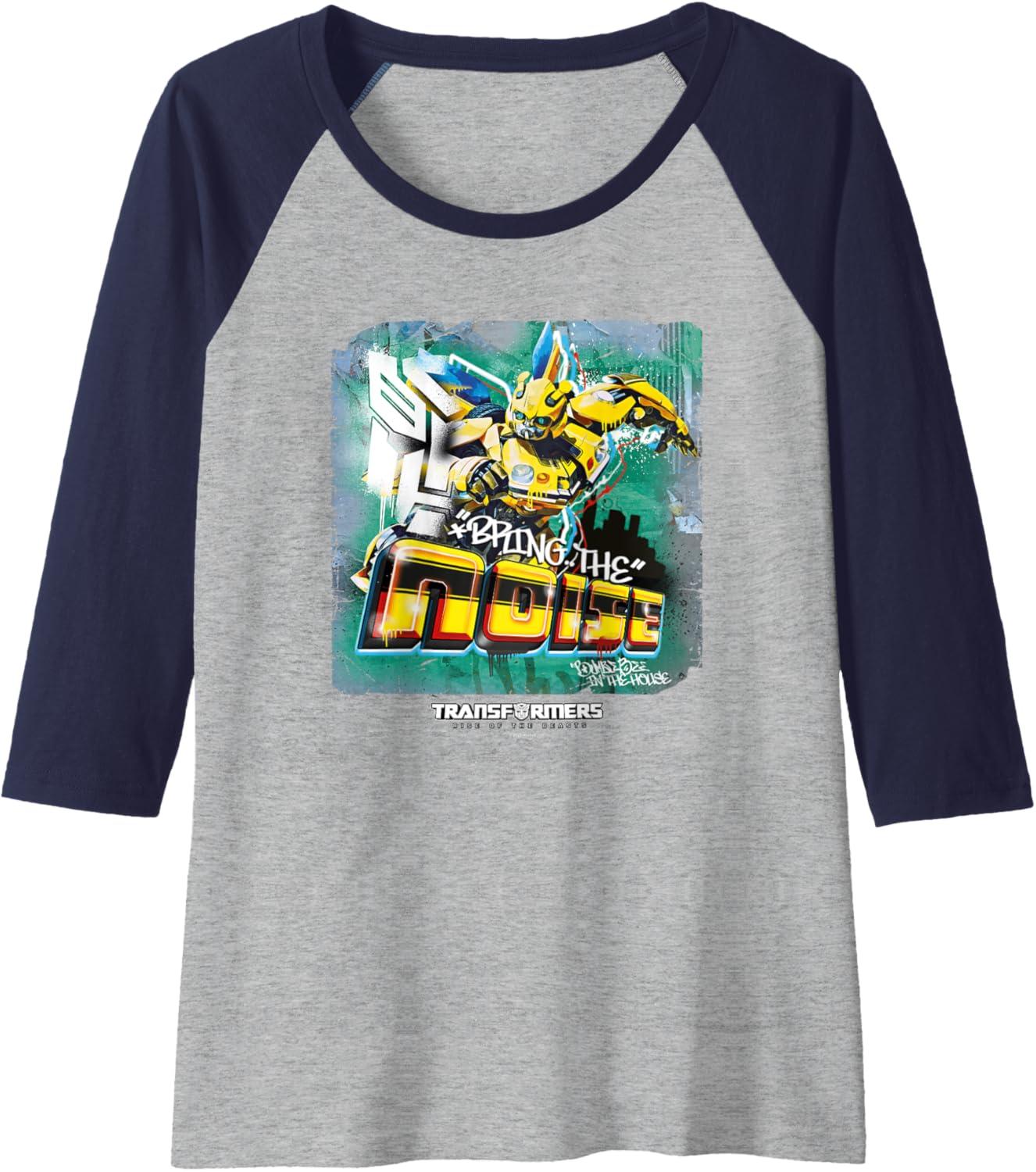 imageTransformers Rise of the Beasts Bring The Noise Bee Art Raglan Baseball TeeNavy BlueAthletic Heather